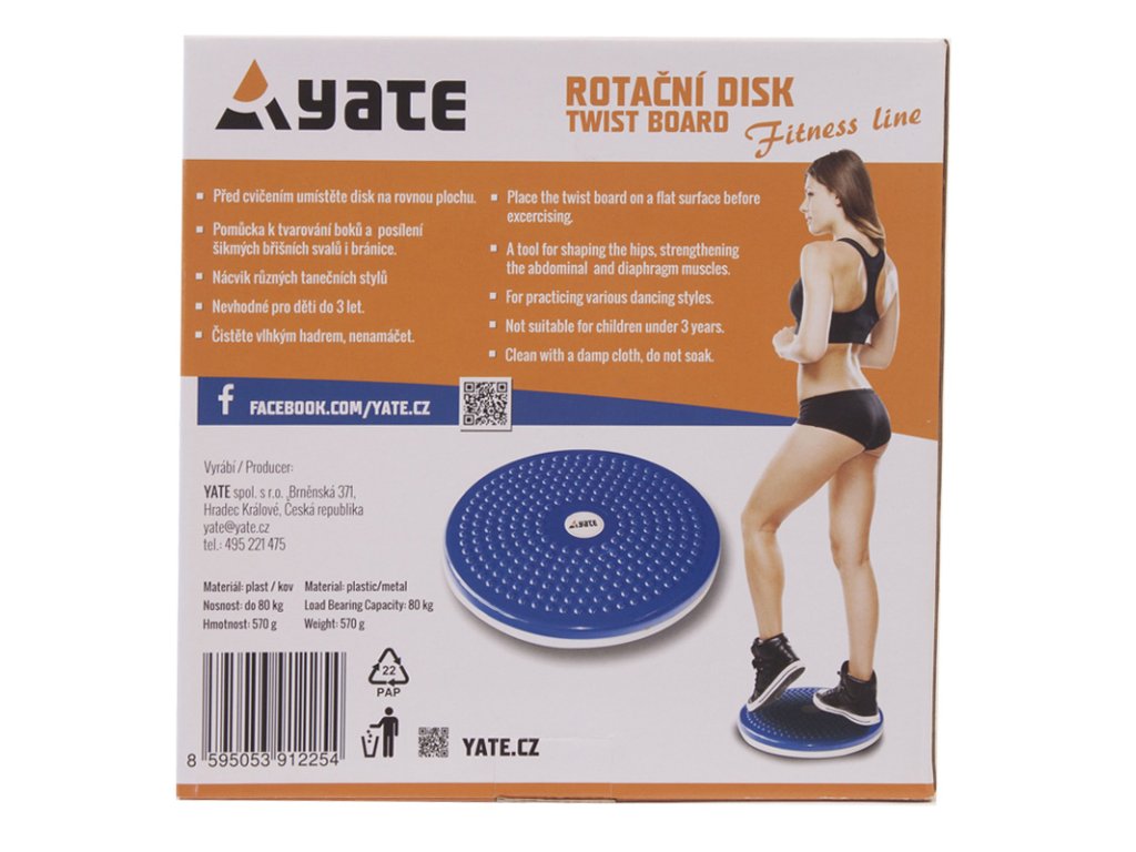Rotačný disk je univerzálna posilňovacia pomôcka na precvičenie hornej i dolnej polovice tela. Posilňuje najmä stehenné, sedacie a brušné svaly. Za pomoci disku sa však dá precvičiť takmer celé telo - prsia, paže atď. Rotačný disk je malý a skladný, a preto sa jedná o jednu z najpredávanejších pomôcok. Ideálny pomer cena: výkon.
