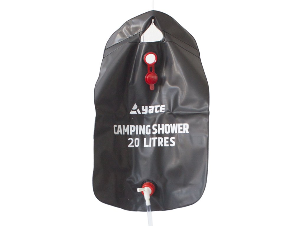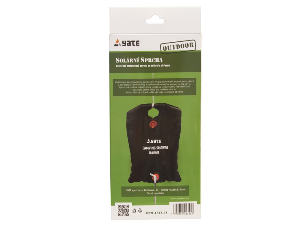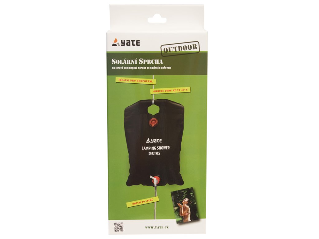 Ideálna súčasť vybavenia na kempovanie. Tmavý materiál priťahuje slnečné žiarenie a tak dochádza k ohrevu vody. Na priamom slnku ohreje vodu až na cca 40 °C. Sprcha má zosilnené držadlo, ktoré umožňuje jej zväčšenie a rozloženie váhy. Dodávané vrátane šnúry na zavesenie a háčika.