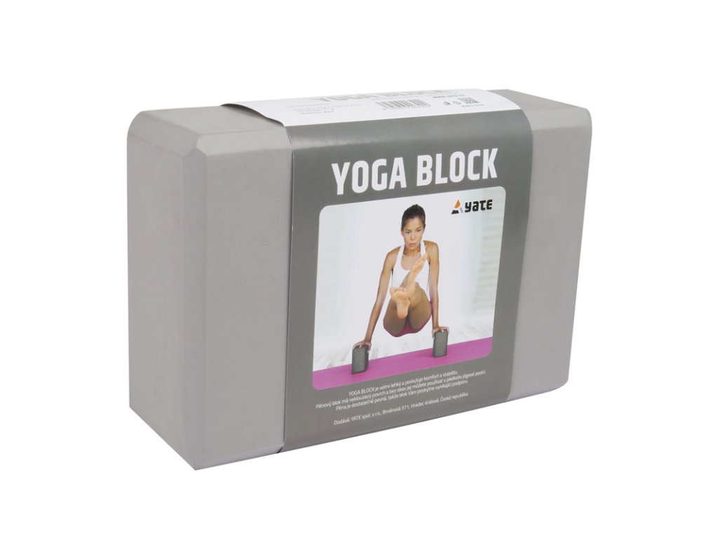 YOGA Block  ;je veľmi ľahký a poskytuje komfort a stabilitu. Penový blok má protišmykový povrch a bez obáv ho môžete používať v akejkoľvek jogovej pozícii. Pena je dostatočne pevná, takže blok Vám poskytne vynikajúcu podporu. /cdn.myshoptet.com/usr/www.yate.cz/user/shop/big/2514_sa04679-yoga-block-22-8-x-15-2-x-7-6-cm-seda.jpg?627cc911 " alt="yogablock" />