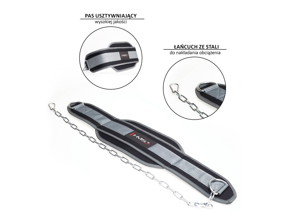 Záťažový pás HMS slúži na zvýšenie obtiažnosti cvikov vo visu, ako sú zhyby a dipy. Maximálne navýšenie váhy, ktoré pás znesie je 150 kg.