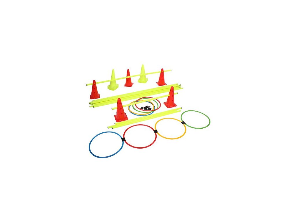 Tréninková agility sada Merco Skillfiter je jednoduchá a praktická pomůcka pro vytvoření překážkové dráhy na jakémkoli povrchu ve vnitřním nebo venkovním prostoru. Tato sada obsahuje celkem 18 kuželů s otvory o výšce 30 cm, které můžete kombinovat s přiloženými tyčemi o délkách 100 cm a 160 cm a průměrem 25 mm. Dále jsou zde také kruhy s průměrem 40 cm, díky kterým si vytvoříte jednoduchou dráhu. To vše je dodávané v praktickém polyesterovém vaku se zapínáním na šňůrku a dvěma popruhy pro snadné přenášení celé sady přes rameno. - 5x červený kužel s otvory a výškou 30 cm - 13x žlutý kužel s otvory a výškou 30 cm - 4x tyčka 100 cm - 9x tyčka 160 cm - 8x kruhy s průměrem 40 cm - praktický vak se šňůrkou - hmotnost sady cca 6,8 kg - pro indoor i outdoor použití - materiál: plastDoplňkové parametry
