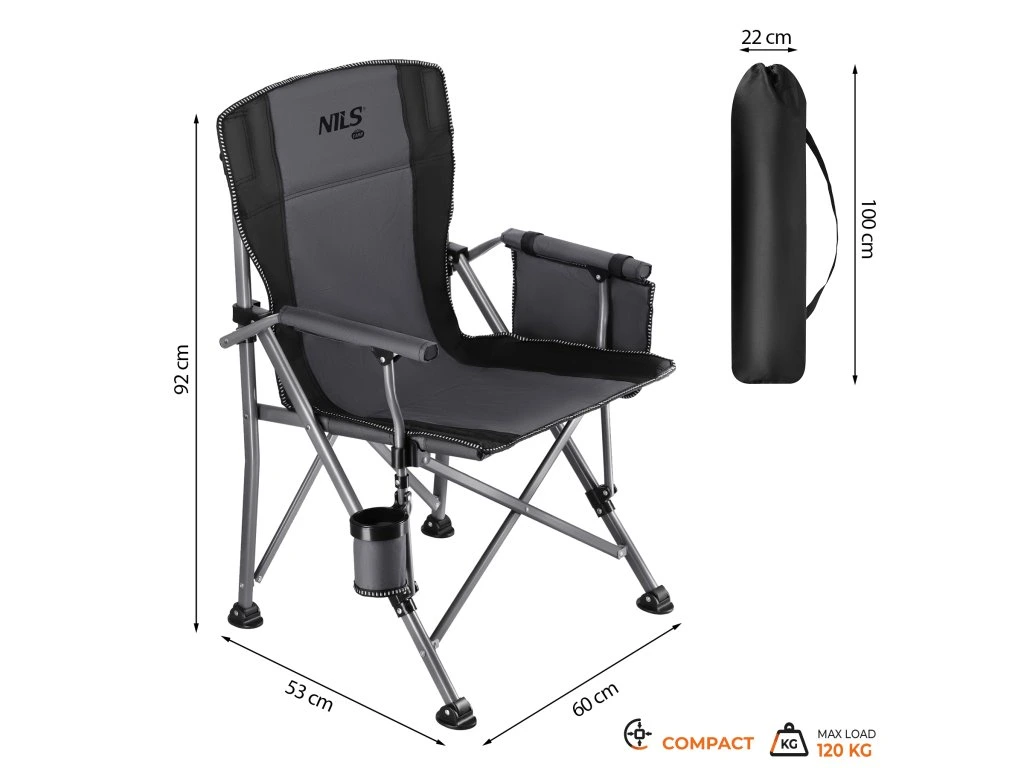 Skládací rybářské křeslo NILS Camp NC3309 šedo-černé