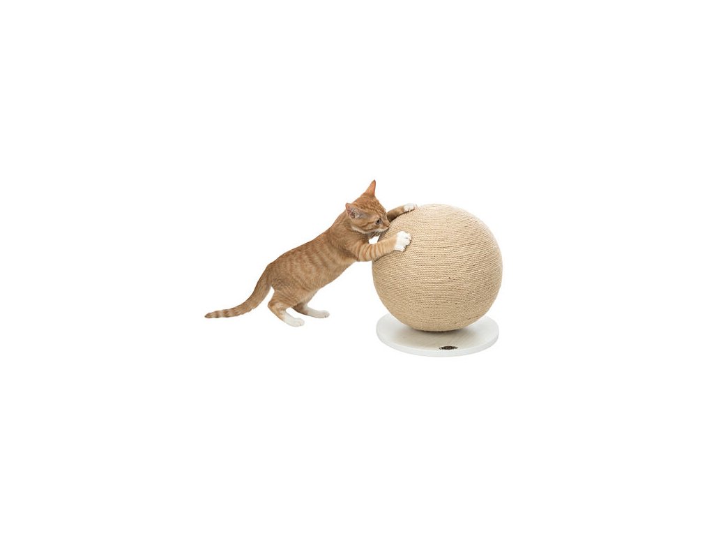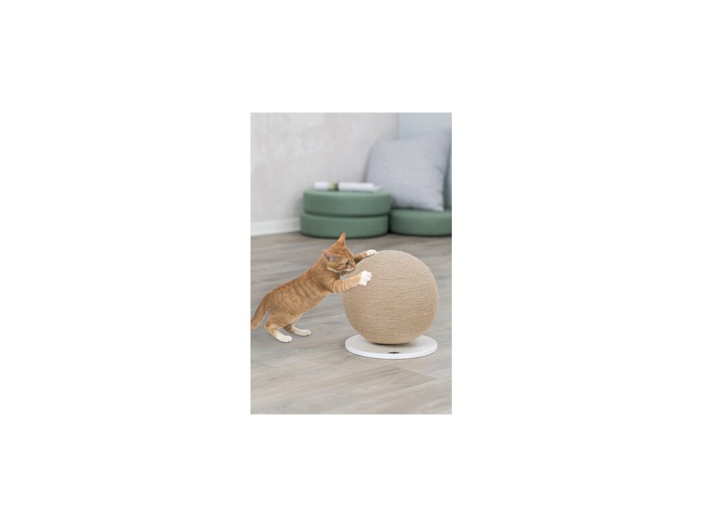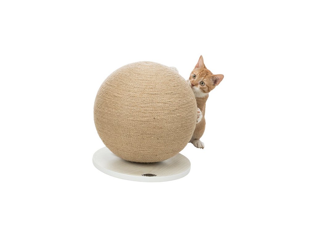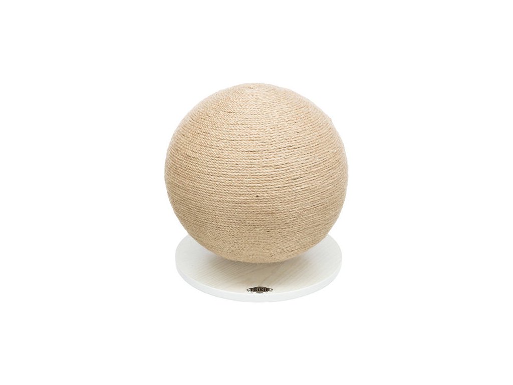 Škrábací koule na dřevěném podstavci , o 29 × 31 cm, juta