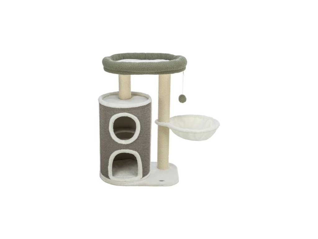 Škrabadlo DANTE, 86 cm, válcová kukaň, 2 lůžka, míček, bílá/khaki/šedá