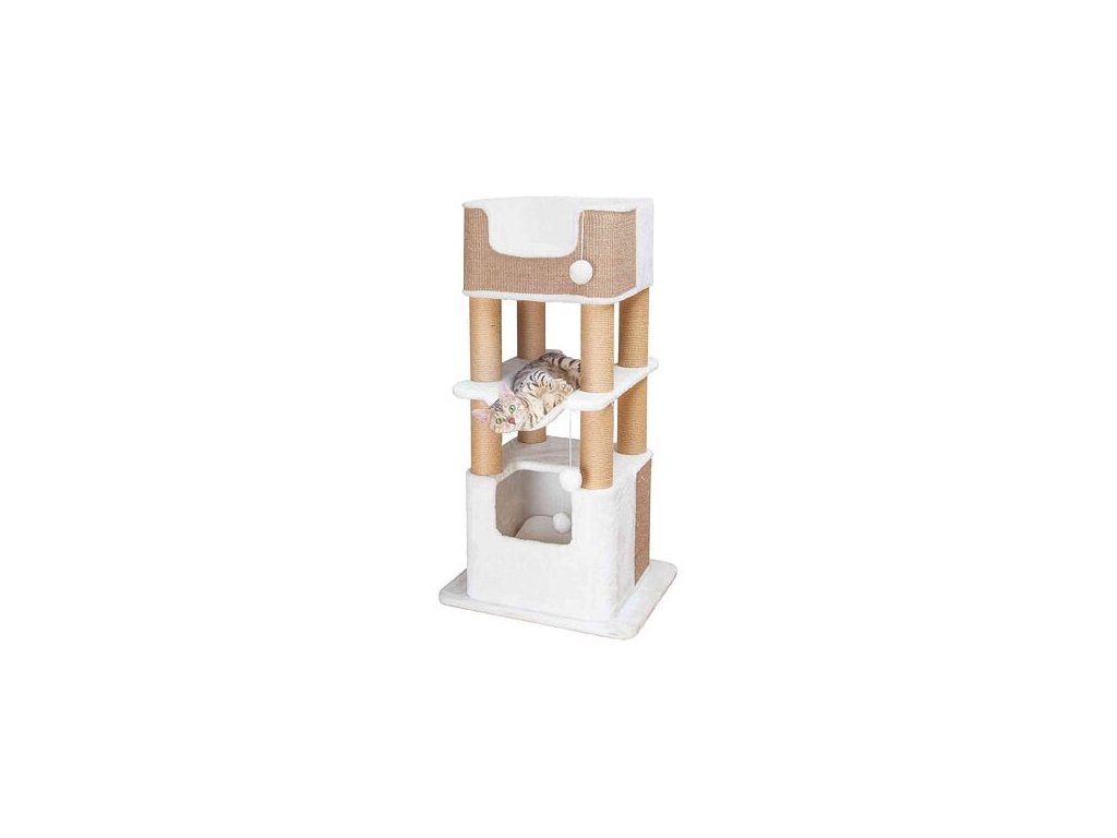 členité škrabadlo s několika plyšovými odpočívadly jeskyňka vypolstrovanáplyšem zavěšená hračka na šňůrce sisal: ø 6...