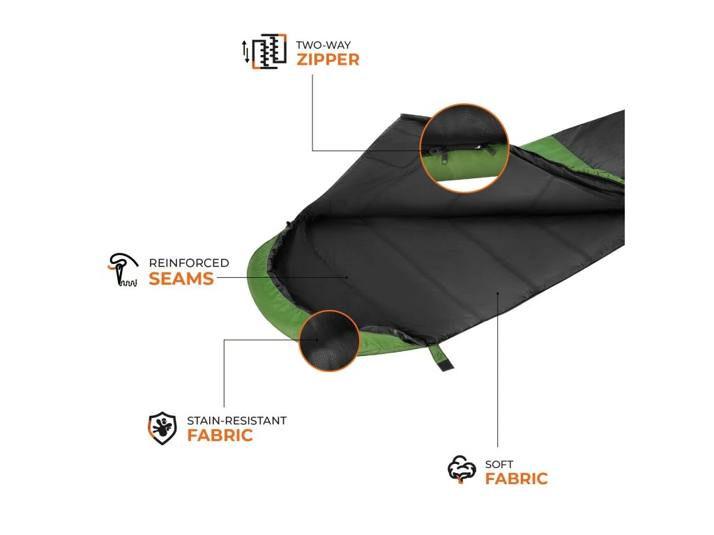 Stahovací kapuce pomáhá omezit únik tepla během chladnějších nocí a umožňuje lepší přizpůsobení uživateli. Vnitřní podšívka z jemného mikrovlákna je příjemná na dotek a zvyšuje komfort i při delším používání.