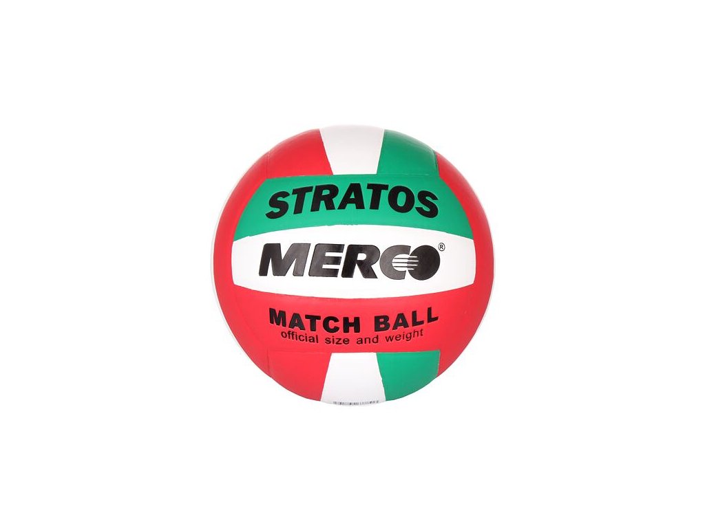 Tréninkový míč na volejbal Merco Stratos je vhodný pro rekreační i pravidelné hráče a školy. Lepený míč je vyrobený z měkčeného PU pláště, který se skládá z 18 panelů a má oficiální velikost s obvodem 650 – 670 mm a hmotností 260 – 280 gramů. Vzdušnice z butyl kaučuku si dlouhodobě udržuje svůj tvar, živý odraz i tlak. Míč je vhodný pro trénink v hale i venku. Upozornění: Míč vždy nafoukněte pomocí navlhčené jehly na doporučený tlak (uvedeno na míči), jinak riskujete poškození míče!Doplňkové parametry