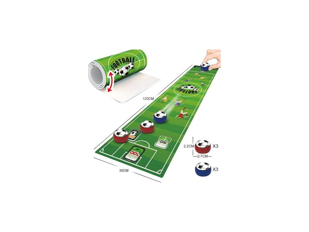 Merco Table Football je jednoduchá stolní společenská hra, při které si užijí spoustu zábavy jak děti, tak dospělí. Posouváním hracích kamenů v podobě fotbalových míčů s kovovou kuličkou na spodní části se na filcové hrací ploše trefuje fotbalová branka a další cíle na hřišti s různými bodovými ohodnoceními. Tým, který trefí více branek, nebo bodovaných oblastí, vyhrává. Hra je uložena v praktickém balení, takže je snadno přenosná a vy si jí můžete na rovném povrchu zahrát kdekoliv a kdykoliv. Užijete si chvíle zábavy i napětí se společenskou hrou Merco Table Football. Obsah balení: - 1 x hrací plocha z filcového materiálu, rozměr: 120 x 30 cm - 6 x plastový hrací kámen s kovovou kuličkou. Ve dvou barvách, průměr kamene 2,5 cm - Rozměr balení: 33 x 7 x 7 cm - Váha balení: 245 g Pravidla hry: 1. Rozdělte se na dva týmy, každý tým má 3 hrací kameny ve stejné barvě. 2. Rozlosujte, který tým bude začínat. 3. Posunutím hracího kamene se snažte trefit branku nebo jiné bodované části hracího pole. 4. Po každém pokusu se týmy střídají. V další kole začíná ten tým, který v předchozím kole získal více bodů. 5. Body se počítají pouze pokud trefíte bodovanou část. Platný je i pokus, když trefíte pouze okraj bodované části. 6. Pokud trefíte symbol červené karty, body se odečítají. 7. Hra končí po použití všech kamenů a spočítáním bodů. Můžete si však zvolit, že budete hrát na více kol a body spočítat až po dohrání všech kol. Vítězí tým s více body. Varianta - obranná hra: Obránce rozmístí své tři míče v zadní polovině hřiště, jeden míč umístí do oblasti 100 bodů a zbylé dva míče jako obránce. Útočící strana musí použít své tři míče k tomu, aby odpálila míč bránící strany mimo bodovací oblast. Po útoku a obraně si obránci a útočníci vymění pole a pokračují ve hře. Za úspěšnou obranu nebo útok se zapisuje 1 bod a vyhrává tým, který jako první získá 10 bodů. Hra je určena pro 2-6 hráčů a je vhodná pro děti od 6 let.Doplňkové parametry