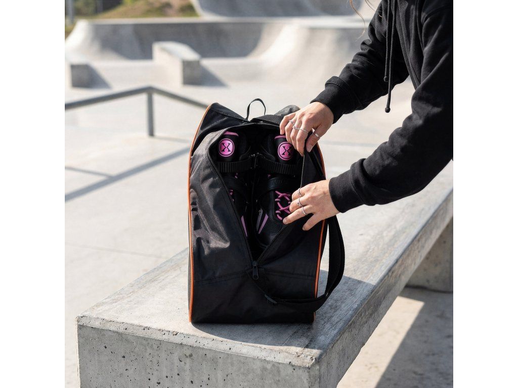 Taška umožňuje pohodlné přenášení jednoho páru kolečkových bruslí, takže se vyhnete jejich nošení v rukou. Skvěle se hodí na cestu do parku, na trénink nebo spontánní vyjížďku.