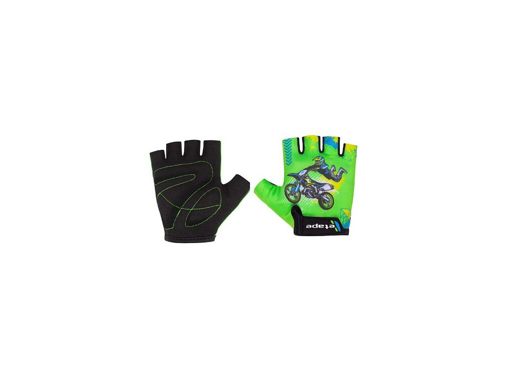 Cyklistické rukavice patří do základního vybavení každého správného cyklisty. Jednak při pádu chrání dlaně proti odření, zvyšují celkový komfort při jízdě a slouží zároveň i jako módní doplněk k vašemu cyklistickému oblečení. Dětské cyklistické rukavice Etape Tiny s roztomilým designem mají anatomické prošití dlaně, protiskluzovou úpravu a jednoduché zapínání na suchý zip. Model Tiny se vyrábí v několika barevných provedeních tak, aby ladil k dětským cyklistickým helmám značky Etape. Dle výrobce velikost rukavic odpovídá přibližně věku dítěte.Doplňkové parametry