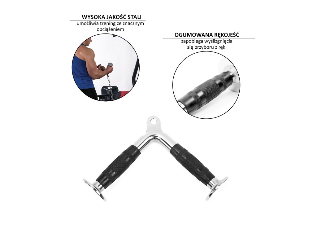 Tricepsový adaptér tvaru V HMS UW06 je vhodným doplňkem pro kladkové posilovací stroje. Gumové rukojeti s protiskluzovým povrchem pomůže konfortnímu cvičení.