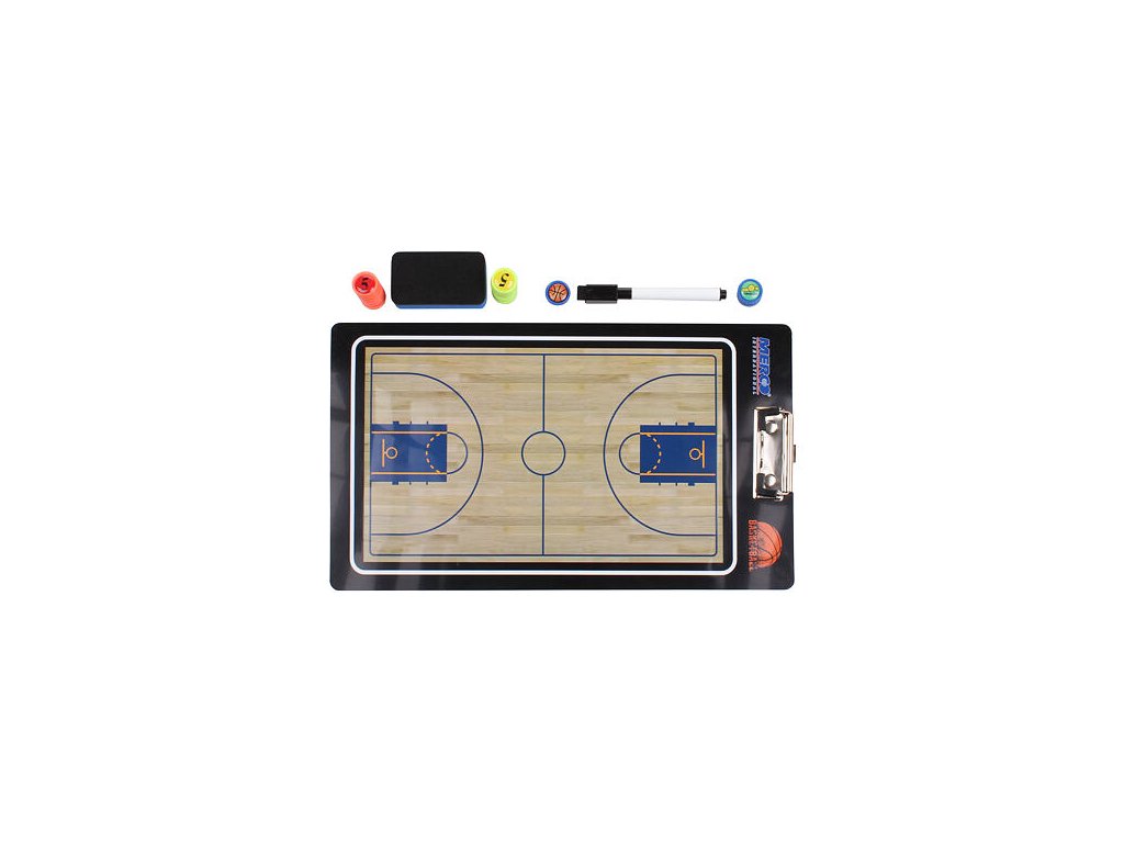 Bảng huấn luyện bóng rổ là phụ kiện thiết yếu của bất kỳ huấn luyện viên bóng rổ nào trong mọi cuộc thi. Bảng bóng rổ chiến thuật Merco Basketbal 65 là bảng từ tính hai mặt, một mặt thiết kế màu sắc của toàn bộ sân bóng rổ và một mặt thiết kế màu sắc của một nửa sân bóng rổ, trong đó có thêm bốn bức tiểu họa nhỏ. Bảng bóng rổ Merco Basketbal 65 bao gồm 13 nam châm (với họa tiết số, quả bóng và trọng tài), bút đánh dấu, miếng bọt biển tẩy xóa và kẹp để ghi chú bổ sung. Bảng chiến thuật Merco Basketball 65 là cách dễ dàng và nhanh nhất để hướng dẫn trò chơi chính xác của bạn cho người chơi bất kỳ lúc nào trong trận đấu bóng rổ.Các thông số bổ sung