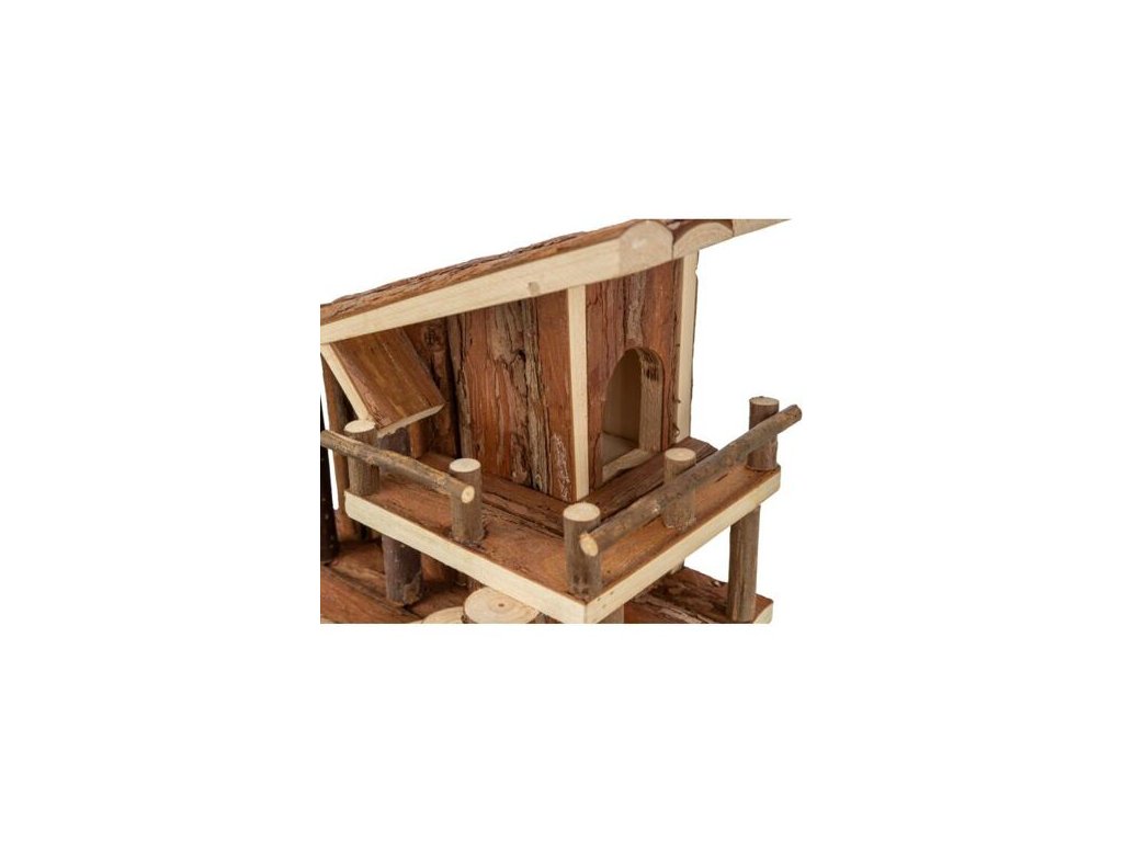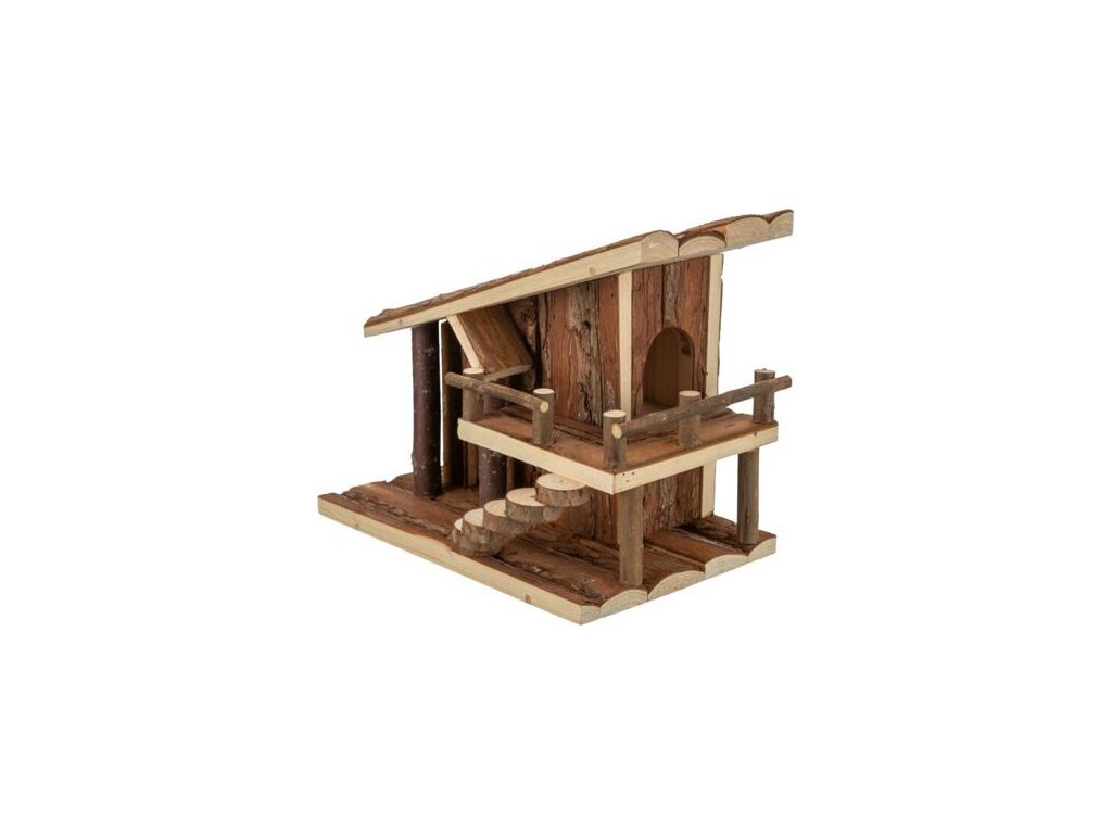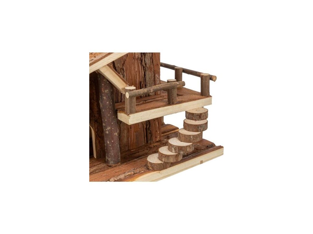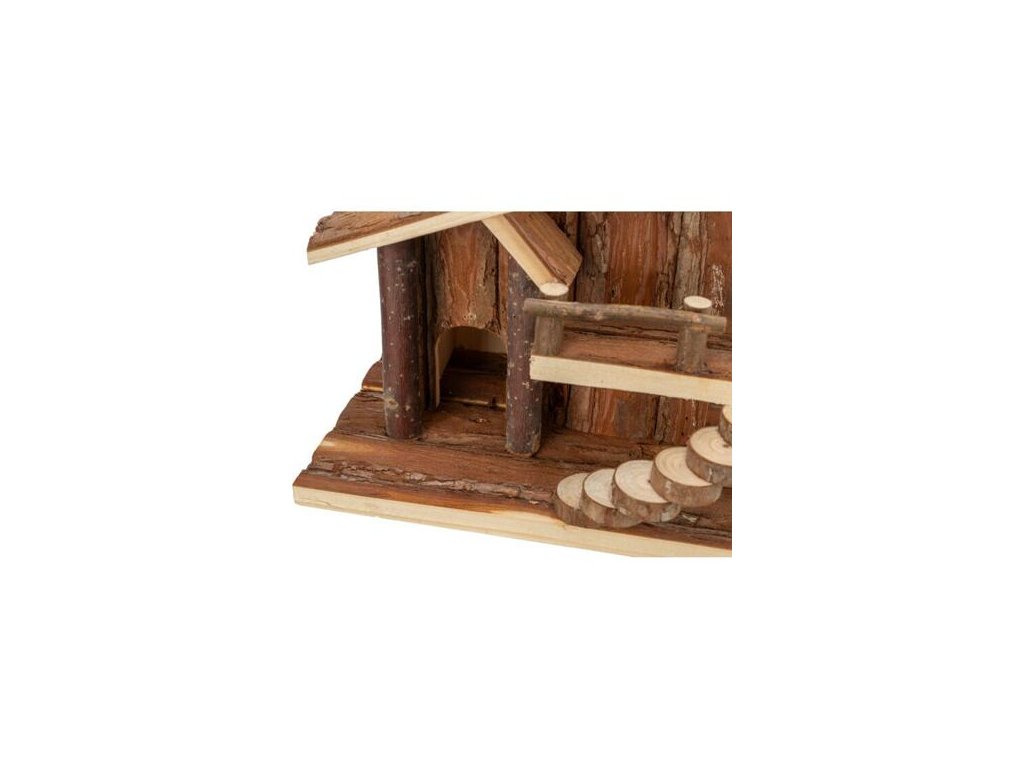 Nhà tranh JULE có sân thượng, dành cho chuột, 25 x 21 x 18 cm, gỗ tự nhiên có vỏ cây