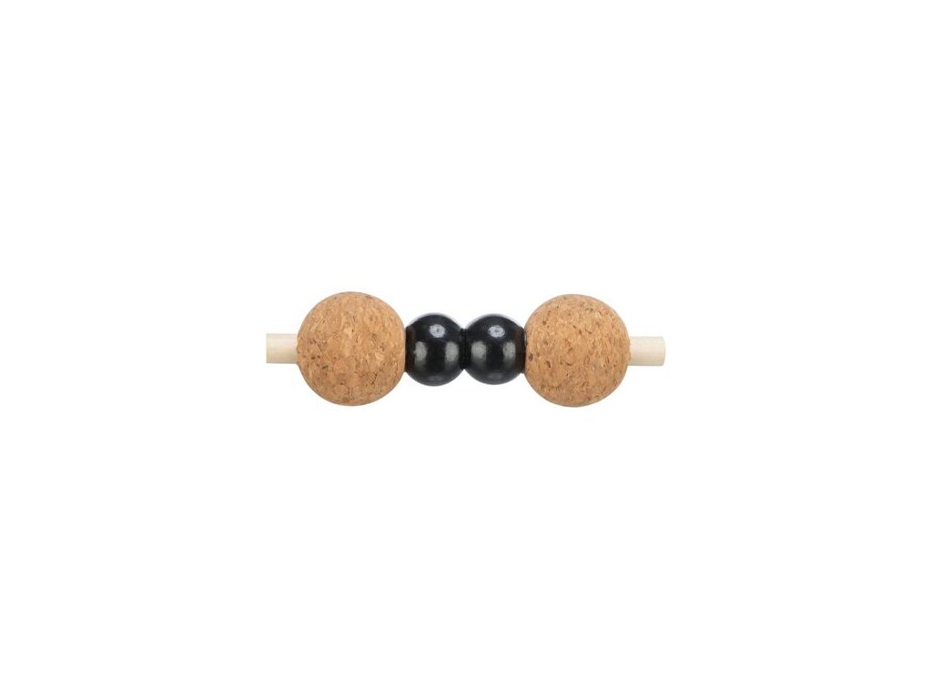 - nút chai và quả bóng gỗ xâu thành chuỗi trên thanh gỗ nhẹ