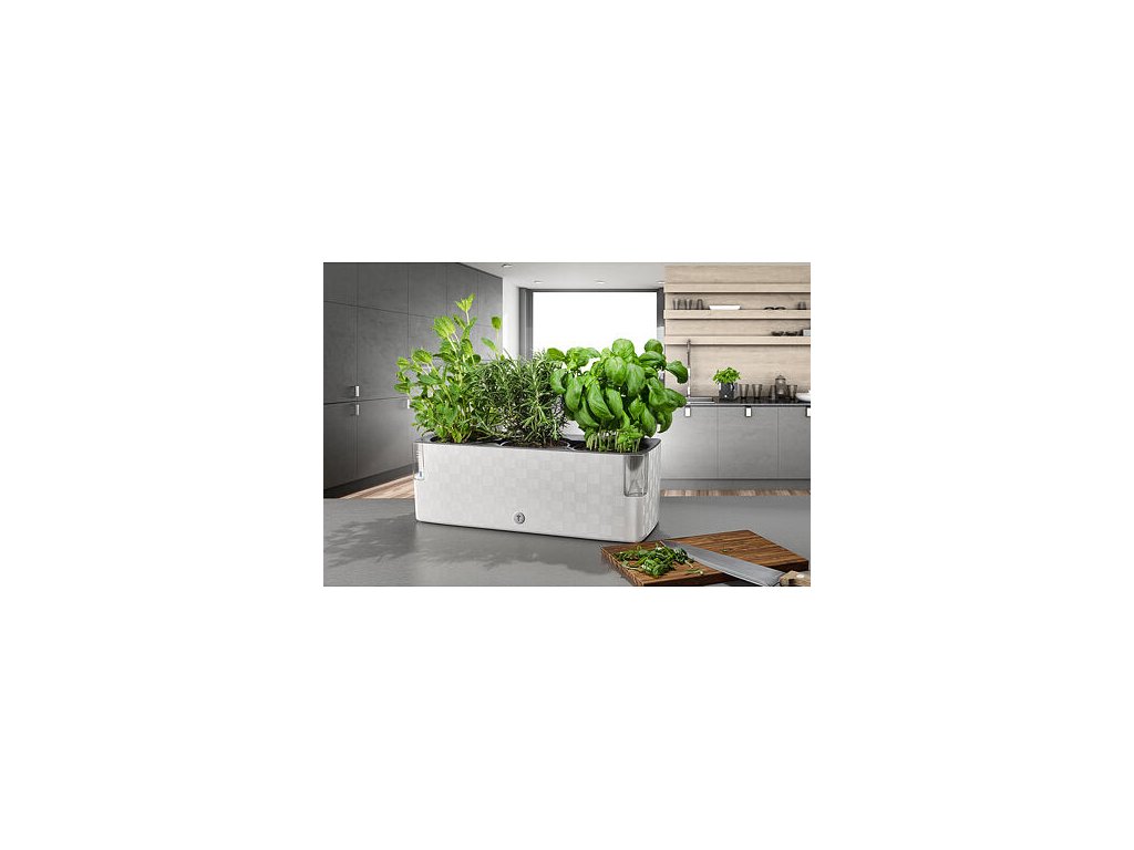 Chậu hoa tự tưới nước được thiết kế riêng Cobble Trio, dành cho ba chậu hoa riêng lẻ, lý tưởng để trồng các loại thảo mộc và cây trồng trong môi trường gia đình. Chiều cao của chậu hoa làm bằng nhựa bền là 14 cm, chiều rộng là 14,5 cm và chiều dài là 40 cm. Đường kính lỗ để cắm 3 chậu hoa là 12 cm (phù hợp với chậu ươm cây có đường kính trên từ 10 đến 12 cm). Độ ẩm được cung cấp dần dần cho cây nhờ hệ thống tưới Aqua System – nước từ bể chứa phía dưới được cung cấp vào chậu cây con với sự hỗ trợ của hai bấc dệt (có 6 bấc trong gói). Đồng thời, bạn không đổ nước trực tiếp vào chậu từ trên cao mà từ bên cạnh vào hố tưới. Ở góc bên kia của lọ hoa có một vạch chỉ lượng nước. Nếu bạn muốn có một chậu hoa treo trên tường hoặc trên lan can ban công, bạn có thể mua giá đỡ chậu hoa Cobble, được thiết kế riêng cho loại chậu hoa này. Nếu cần, chúng tôi cũng cung cấp bấc tưới nước thay thế cho chậu trồng cây Cobble Trio.Các thông số bổ sung