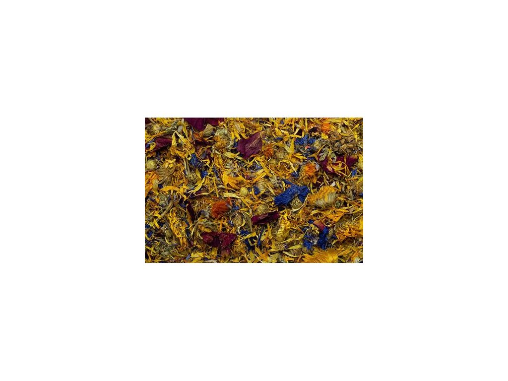 - thành phần: hoa cúc vạn thọ 25%, cánh hoa hồng 25%, hoa oải hương 25%, hoa ngô 25%