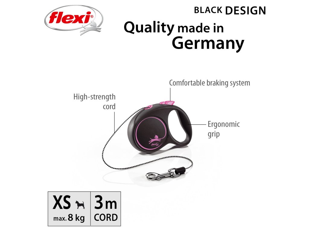 FLEXI Vodítko Black Design XS lanko 3m černo-růžové