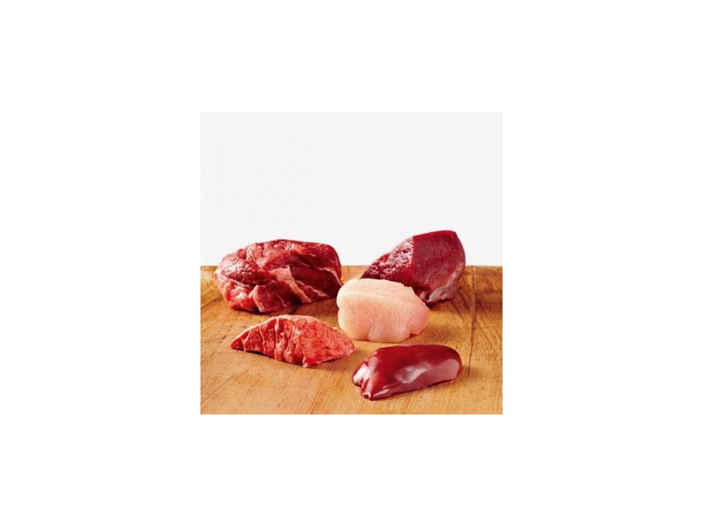 - thành phần: 40% thịt bò (phổi, thịt, tim) , gan, thận, vú), 28% thịt gà (thịt, gan, dạ dày, cổ), canxi cacbonat, dầu cá hồi (0,2%)