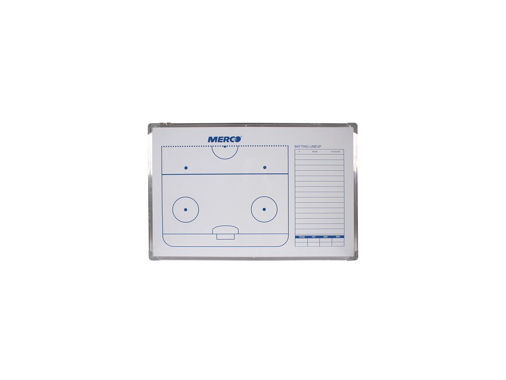 Bảng huấn luyện từ tính hai mặt Merco Hockey 90 là một trong những thiết bị cơ bản trong mọi phòng thay đồ của câu lạc bộ khúc côn cầu cạnh tranh để lập kế hoạch chiến lược trận đấu và phân tích màn trình diễn của các cầu thủ. Tấm bảng có kích thước 90 x 60 x 2 cm và nặng khoảng 2 kg mô tả toàn bộ sân khúc côn cầu ở một bên. Bên kia, một nửa sân và một bàn dành cho danh sách các cầu thủ được trình bày ở 2/3. Bạn sẽ sử dụng hai bộ nam châm có số (8 neon vàng, 8 neon cam và 4 xanh) để đặt các cầu thủ lên sân. Bút đánh dấu màu đen có gắn miếng bọt biển sẽ dùng để minh họa các hướng dẫn chiến lược khác. Tấm từ tính hai mặt được đặt trong khung nhôm, được bổ sung thêm hai móc trượt để có thể treo lên tường.Các thông số bổ sung