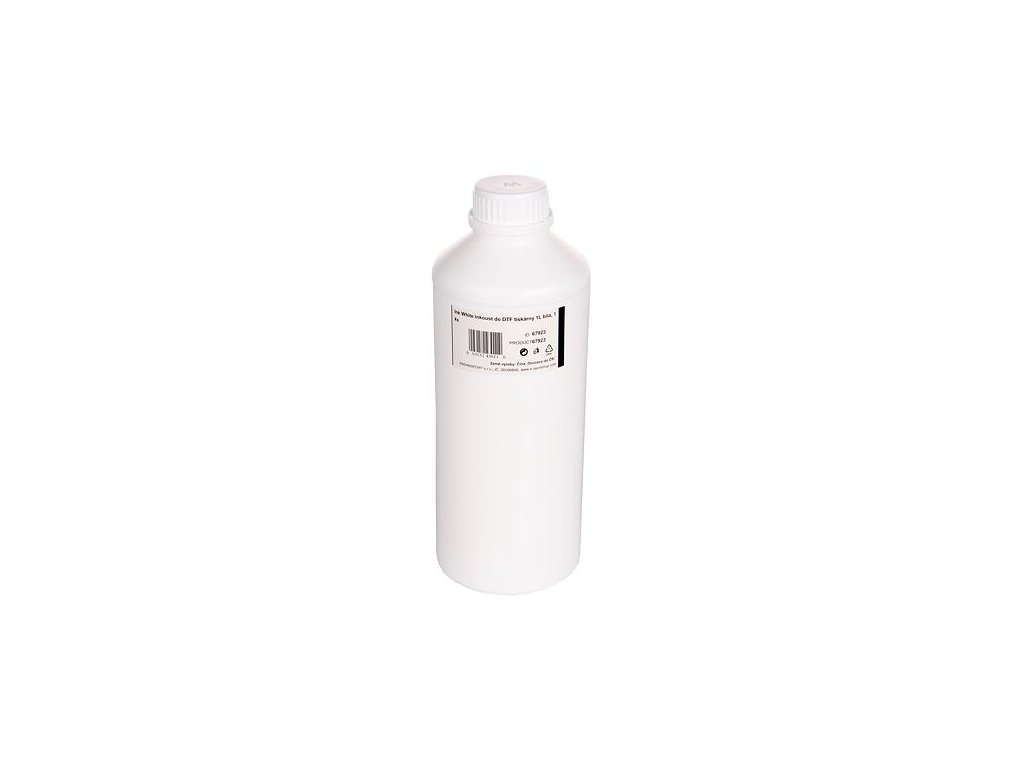 Mực trắng dành cho máy in sử dụng công nghệ DTF (Direct to Foil). Công nghệ DTF (Direct to Foil) là một công nghệ in dệt mới, trong đó một loại giấy bạc đặc biệt được in trên máy in và một loại keo bột đặc biệt được phủ lên bản in, chất kết dính này chỉ dính vào mực trắng. Sau đó, keo này được nấu chảy - bằng cách đặt máy ép nhiệt lên tờ in hoặc trong một "lò nướng" đặc biệt để hòa tan keo bột (bột trở thành một lớp rắn sáng bóng) và thiết kế đã sẵn sàng để chuyển sang vải dệt. Bạn chỉ cần đặt thiết kế đã hoàn thiện này lên vật liệu dệt, phủ giấy nướng / giấy bạc lên trên vật liệu dệt và ủi nó lên vật liệu dệt bằng máy ép cố định, lấy ra khỏi máy ép và để nguội.Các thông số bổ sung