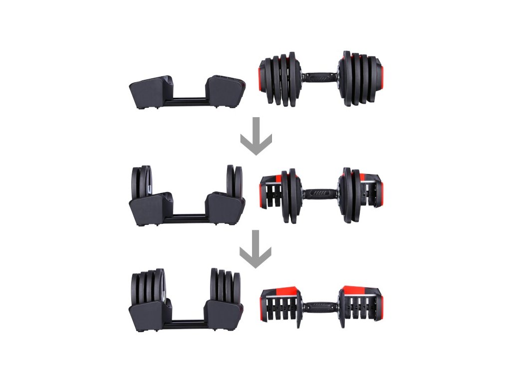Với HMS SGR18, hãy quên đi trọng lượng nặng và đĩa chiếm nhiều không gian, trọng lượng trục thay đổi liên tục và đai ốc khóa không ngừng siết chặt. Với quả tạ có thể điều chỉnh SGR18, bạn có mọi thứ cần thiết để rèn luyện sức mạnh hiệu quả. Bạn có thể thực hiện nhiều bài tập khác nhau với họ và điều chỉnh mức độ tải theo kế hoạch tập luyện của mình. Thiết bị dễ dàng lắp ráp và cất giữ nên không chiếm nhiều diện tích.