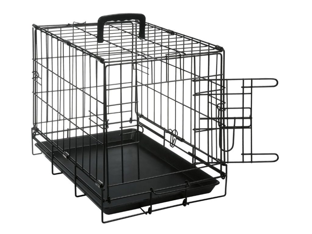 Lồng dây màu đen có hai lối vào dành cho động vật nhỏ có tay cầm. Kích thước 93x57x62cm. .
