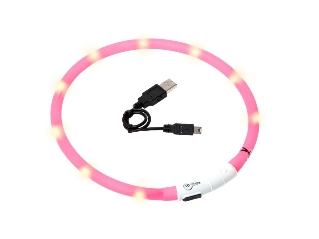 Vòng đèn LED màu hồng có thể nhìn thấy trong phạm vi khoảng 500 m. Pin có thể sạc lại qua cáp USB - không cần pin khác - không thấm nước - đèn nhấp nháy hoặc đèn liên tục. Kích thước 20-75 cm