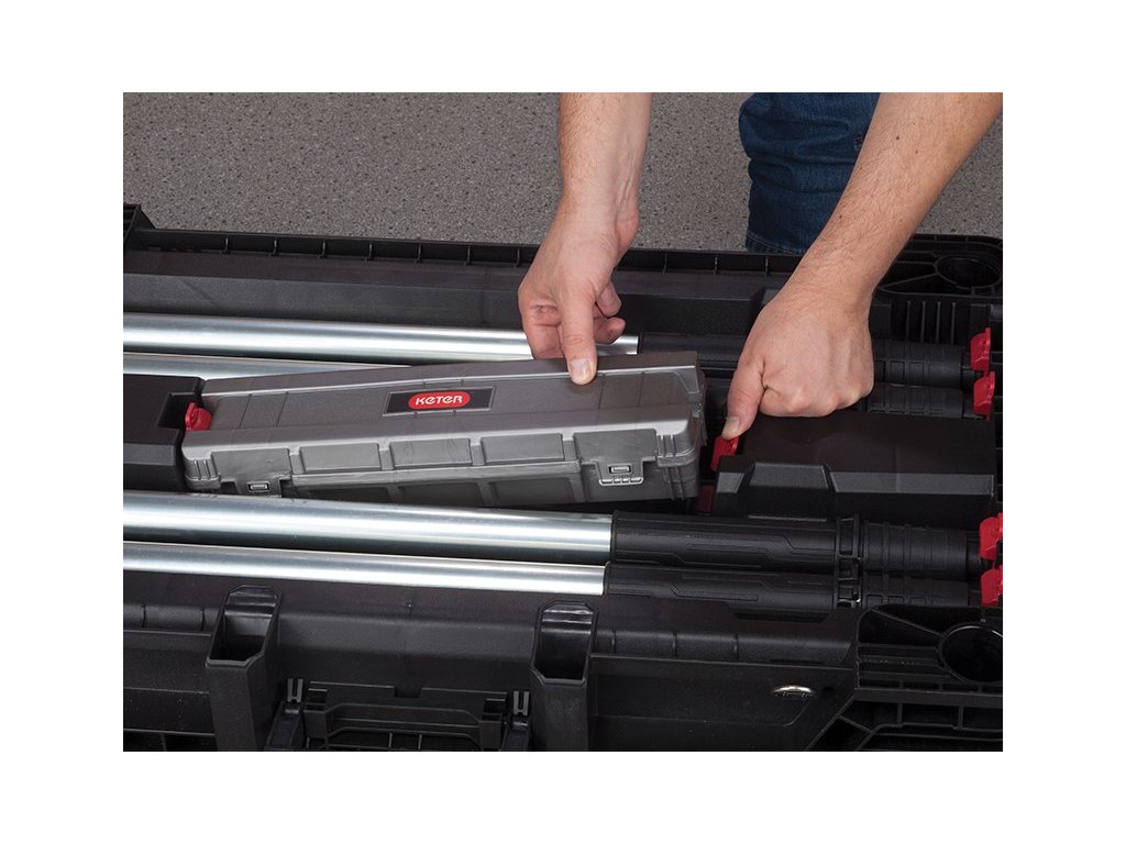 Bàn làm việc di động Jobmade là sự lựa chọn tuyệt vời dành cho các chuyên gia và những người tự làm, những người cần một bàn làm việc thiết thực có thể xử lý hầu hết mọi việc. Được chế tạo với khả năng chịu tải 450kg và tích hợp các thanh ray chữ T đa năng, bàn có thể được sử dụng để thực hiện nhiều nhiệm vụ khác nhau. Bao gồm kẹp X2 và hộp đựng phụ kiện có thể tháo rời. Với tay cầm và kết cấu nhẹ, bạn có thể dễ dàng mang chiếc bàn này đến bất kỳ nơi làm việc nào hoặc dễ dàng di chuyển nó từ gara ra vườn. Chân bao gồm các bộ ổn định tích hợp, bạn có thể sử dụng bàn làm việc ngay cả trên bề mặt không bằng phẳng và tận hưởng bề mặt làm việc hoàn toàn bằng phẳng.