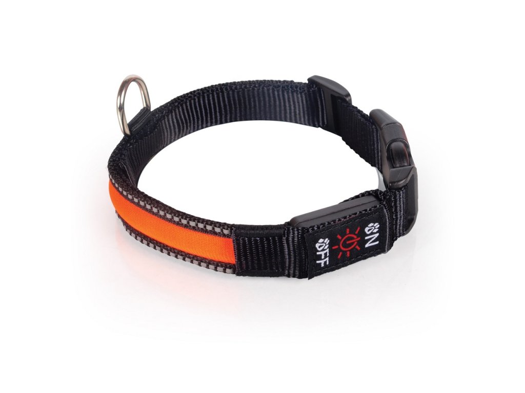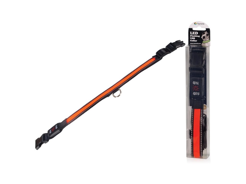 LED obojek dobíjecí USB/vel.L 50-60cm/ oranžový