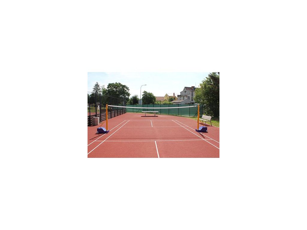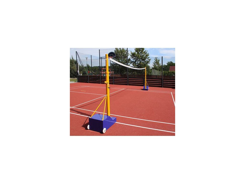 Bạn muốn chơi bóng chuyền, cầu lông, tennis mềm? Nhờ các bài đăng của Multi 3 Games, bạn có thể tận hưởng trò chơi mà không phải lo lắng về việc chuẩn bị sân phức tạp và thiết lập độ cao của lưới. Các bài đăng Trò chơi Multi 3 có thể điều chỉnh độ cao, di động được sử dụng phổ biến cho các trò chơi phổ biến nhất với việc sử dụng mạng ở cấp độ sở thích và giải trí, cả trong nhà và ngoài trời. Chúng được đặt trên bệ có bánh xe, vì vậy bạn có thể di chuyển chúng và đặt chúng ở bất cứ đâu. Không cần phải lo lắng về việc lắp đặt các lỗ và ống lót trên mặt đất như trường hợp của các trụ tiêu chuẩn. Trụ dưới có đường kính trong 8,2 cm được gắn vào đế bằng vít. Trụ trên có thể điều chỉnh độ cao, bạn chỉ cần chọn độ cao mong muốn của lưới, kéo dài hoặc rút trụ và cố định bằng chốt khóa bằng vít. Sau đó, bạn có thể căng lưới nhờ các bánh xe-ròng rọc bằng thép ở phía trên các trụ và cơ cấu căng bằng một vòng. Việc bảo mật và ngắt kết nối mạng cuối cùng được thực hiện bằng cách sử dụng hook. Trụ được làm bằng thép hàn có thành dày 1,4 mm, đường kính trong của trụ trên là 7,6 cm, đường kính ngoài của trụ dưới là 9 cm. Chiều cao của lưới có thể điều chỉnh 7 vị trí từ 155 đến 245 cm bằng cơ cấu căng. Nếu cần đặt lưới ở vị trí thấp hơn có thể gắn vào móc. Lưu ý Trước khi bắt đầu trò chơi, phải đặt một tải trọng khoảng 60-80 kg vào mỗi đế để đảm bảo đủ độ ổn định cho các trụ. Trước khi cài đặt Multi 3 mobile post, hãy tìm hiểu kỹ hướng dẫn sử dụng và lắp ráp, bạn có thể tải xuống ở bên phải bên cạnh mô tả sản phẩm. Thông số: - Trụ dưới: dài 127 cm, đường kính ngoài 9 cm - Trụ trên: dài 145 cm, đường kính trong 7,6 cm - Đế: dài x rộng x cao: 67 x 40 x 13/31 cm - trọng lượng 1 trụ có đế không tải: khoảng 25 kg - vật liệu: thép hàn - tùy chọn điều chỉnh chiều cao lưới: ở 7 vị trí: chiều cao 155, 180, 190, 200, 210, 224, 243 cm - vị trí móc ở trụ dưới: ở 7 độ cao: 20, 50, 83, 93, 107, 112, 129 cmCác thông số bổ sung