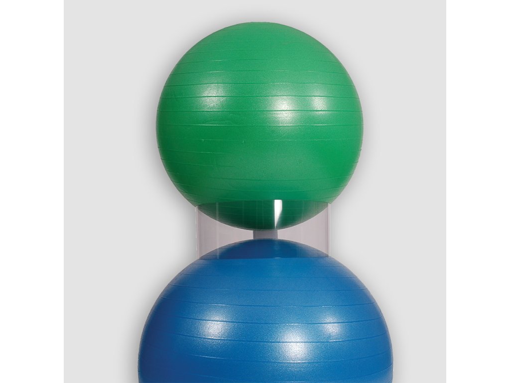 Dây đai đựng bóng là một dụng cụ bảo quản hữu ích. Một chiếc thắt lưng trong suốt có khóa Velcro tạo thành hình trụ cho phép bạn xếp các quả bóng thể dục lên nhau.