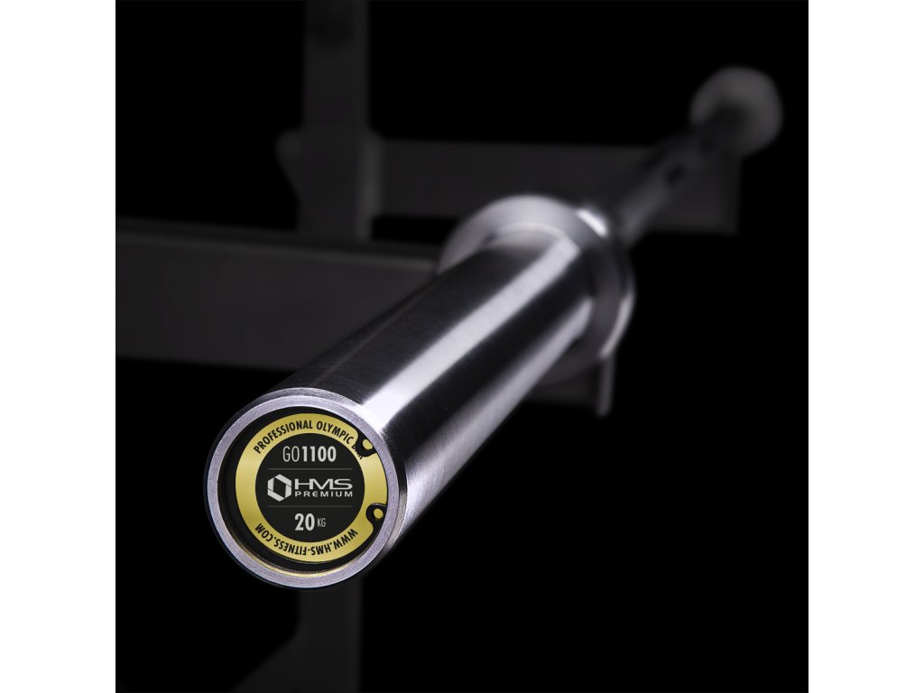 Trục Olympic HMS Premium GO1100 được làm bằng thép mạ crom đặc biệt đã trải qua quá trình đông cứng. Trục GO1100 được đặc trưng bởi sức mạnh kết hợp với tính linh hoạt hoàn hảo. Bộ sản phẩm bao gồm hai nắp nhựa ZG1500. Tay cầm chắc chắn và thoải mái trên trục được đảm bảo bằng các răng cưa trên bề mặt. Tải trọng tối đa là 1100 kg. Đường kính phần tay cầm là 30 mm đảm bảo độ bền cao và sự thoải mái trong quá trình tập luyện. Quá trình mạ crom được sử dụng trên trục nhằm đảm bảo duy trì vẻ ngoài của nó trong thời gian dài sử dụng và cũng là biện pháp bảo vệ chống ăn mòn tốt nhất. Trục Olympic HMS Premium GO1100 có 10 vòng bi kim (5 vòng mỗi bên) cho phép các ống bọc xoay trơn tru và êm ái trên trục. Thiết kế của nó làm giảm ứng suất ở các đầu con lăn, giúp kéo dài tuổi thọ của vòng bi. Mặc dù có tiết diện nhỏ nhưng vòng bi lăn kim có độ cứng và khả năng chịu tải cao. Hai nắp nhựa đi kèm trong gói đảm bảo phân bổ tải trọng ổn định lên trục trong quá trình luyện tập. Mũ có các bộ phận cao su ở phần bên trong để ngăn trọng lượng bị lỏng.