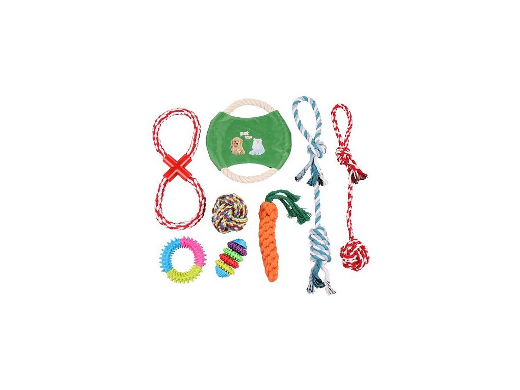 Bộ đồ chơi dây thừng và cao su lớn của Play Time là một cách tuyệt vời để giúp thú cưng của bạn giải trí ở nhà và khi di chuyển. Trọn bộ gồm 8 miếng khác nhau để nhai, kéo, dắt chó, v.v. Đồ chơi được làm từ dây cotton và chất liệu TPR.Các thông số bổ sung