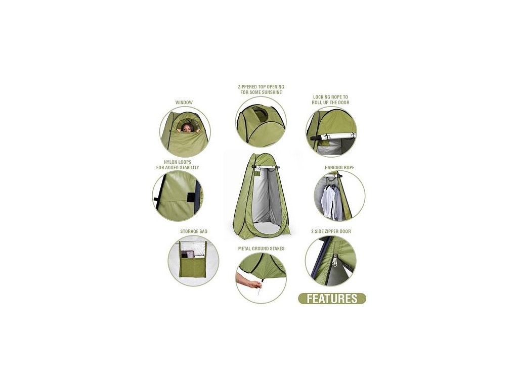 Lều thay đồ Merco Private tiện dụng đảm bảo sự thoải mái khi thay đồ trên những bãi biển đông đúc bên bờ sông, lễ hội, khu cắm trại hoặc studio. Lều mái kín được làm bằng vải polyester 190T, đây là loại sợi polyester bền chắc có khả năng chống tia cực tím cực tốt. Bạn có thể xây dựng Riêng tư trong vài giây và nó gần như tự mở ra thành hình dạng mong muốn. Bên trong lều, bạn sẽ tìm thấy một túi được thiết kế để đựng mỹ phẩm cơ thể, tài liệu, điện thoại và các phụ kiện nhỏ. Bên trong còn có một dây để treo từng bộ quần áo. Để đạt được độ ổn định và khả năng cản gió tốt hơn, chúng tôi khuyên bạn nên sử dụng 4 cọc lều đi kèm trong gói. Kích thước của lều là 120 x 120 cm với chiều cao 190 cm. Với trọng lượng 2 kg nên rất nhẹ, dễ dàng mang theo và cất giữ.Các thông số bổ sung