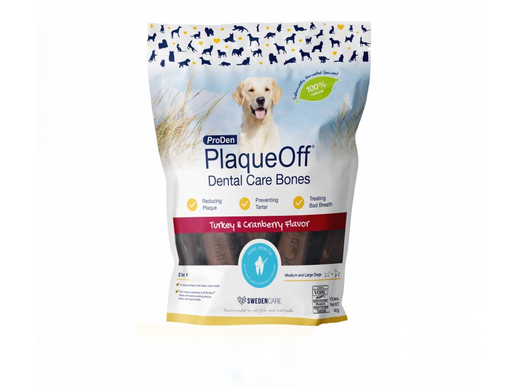 Xương nha khoa ProDen PlaqueOff® là xương nhai có chứa thành phần rong biển AN ProDen® 100% tự nhiên và đã được chứng minh lâm sàng. Chúng giúp giải quyết các vấn đề về khoang miệng với tác dụng kép - AN ProDen® và hình dạng xương độc đáo với tác dụng mài mòn. Khi được sử dụng theo chỉ dẫn, chúng giúp kiểm soát và cải thiện sự tích tụ mảng bám và cao răng, mang lại hơi thở thơm mát hơn.