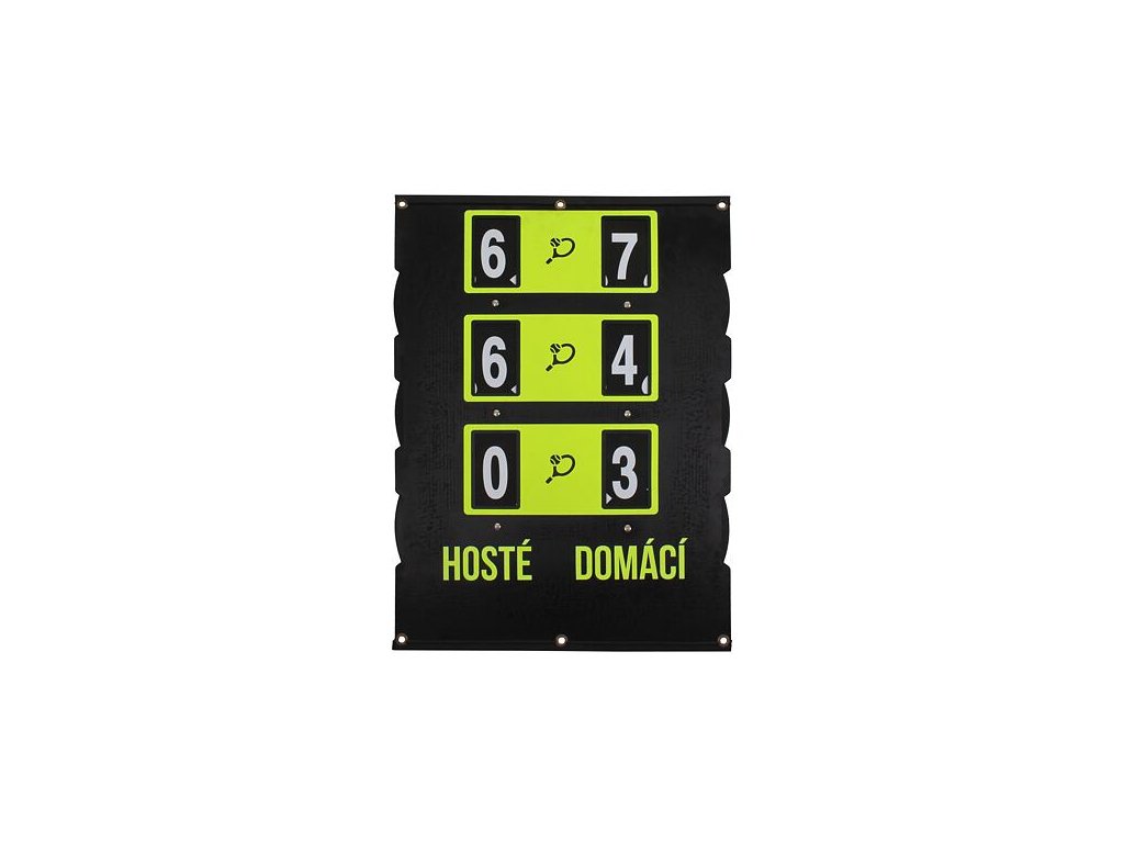 Nhờ chỉ báo điểm hai mặt của Merco Scoreboard CZ, bạn sẽ ghi lại tiến trình của mỗi trận đấu quần vợt một cách đáng tin cậy. Bảng điểm gồm ba set 0-7 có các số lớn màu trắng dài 9cm trên nền đen tương phản với nền màu vàng neon giúp người chơi cũng như khán giả dễ dàng nhìn thấy điểm số. Chuyển động của các chữ số được đảm bảo bằng các bánh xe trượt thủ công ở hai bên của con trỏ. Tổng kích thước của chỉ báo được làm bằng nhựa ABS bền là 83 x 58 cm và được trang bị các lỗ để treo ở các cạnh cao su trên và dưới. Do được sử dụng chất liệu nên Bảng điểm có trọng lượng nhẹ 3,4 kg và phù hợp để sử dụng trong nhà và ngoài trời, ngay cả trong điều kiện thời tiết bất lợi. Mô hình này được thực hiện với dòng chữ Séc. - chất liệu: nhựa ABS, cao su - kích thước: 83 x 58 cm - trọng lượng: 3,4 kg - dễ sử dụng - khoen kim loại để treo - sử dụng trong nhà và ngoài trời - Chữ khắc CZCác thông số bổ sung