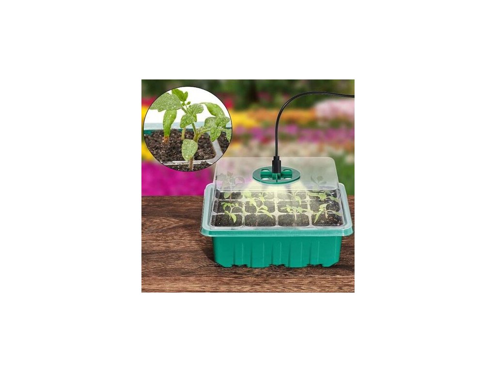 Bạn có thích làm vườn và trồng cây từ hạt giống không? Vậy thì nhà kính mini Seedling Pot 12 Light là nơi lý tưởng dành cho bạn. Chiếc cốc nhỏ này được sử dụng để chuẩn bị cây con, cắt cây và ươm hạt. Đèn chậu cây giống 12 được làm bằng nhựa PET và bao gồm một chiếc đĩa màu xanh lá cây, một tấm lót cây con trong suốt có lỗ thoát nước, một nắp trong suốt để điều chỉnh luồng không khí, đèn LED, 10 khía để đánh dấu cây con và một dụng cụ làm vườn mini bằng nhựa dụng cụ . Mỗi nồi Lẩu mini có 12 lỗ dành cho cây con và cả bộ Nồi 12 cây giống gồm 5 chiếc Lẩu mini. Một tủ hấp mini có kích thước 18,5 x 16 x 14,5 cm (WxHxD) và lợi thế lớn so với các tủ hấp mini cạnh tranh là nắp đủ cao. Hướng dẫn: 1) Làm ẩm đất, tốt nhất là dùng máy phun. 2) Dùng xẻng nhựa mini để lấp đất vào các lỗ. 3) Dùng cọc trồng cây mini để tạo lỗ cho hạt hoặc cành giâm. Đặt hạt vào các lỗ. 4) Bạn có thể sử dụng các vạch màu trắng để đánh dấu cây. 5) Đóng nồi hấp có nắp trong suốt và điều chỉnh luồng không khí (vi khí hậu) bằng bánh xe màu xanh lá cây. 6) Cắm cáp USB vào vòng tròn màu xanh lá cây (sau đó cắm bộ chuyển đổi vào ổ cắm - bộ chuyển đổi không được bao gồm trong gói), thao tác này sẽ khởi động đèn. 7) Làm ẩm đất thường xuyên, có thể bón thêm phân bón. 8) Đặt nồi hấp ở nơi sáng sủa và ấm áp. 9) Bạn có thể sử dụng công cụ mini thứ hai đi kèm để loại bỏ cây con. Lời khuyên: Đánh dấu tất cả các hạt giống. Sử dụng đất chất lượng tốt để tránh sâu bệnh và nấm mốc có thể xảy ra. Chúng tôi khuyên bạn nên gieo 2-3 hạt trong mỗi chậu hoa để tăng cơ hội trồng thành công. Trước khi lấy cây con ra khỏi chậu hoa, hãy để đất khô một chút thì việc lấy cây con ra sẽ dễ dàng hơn. Nội dung gói: 5 chiếc nhận dạng thực vật 2 chiếc dụng cụ làm vườn mini 1 chiếc cáp USB với 5 thiết bị đầu cuối Chất liệu: nhựa PETCác thông số bổ sung