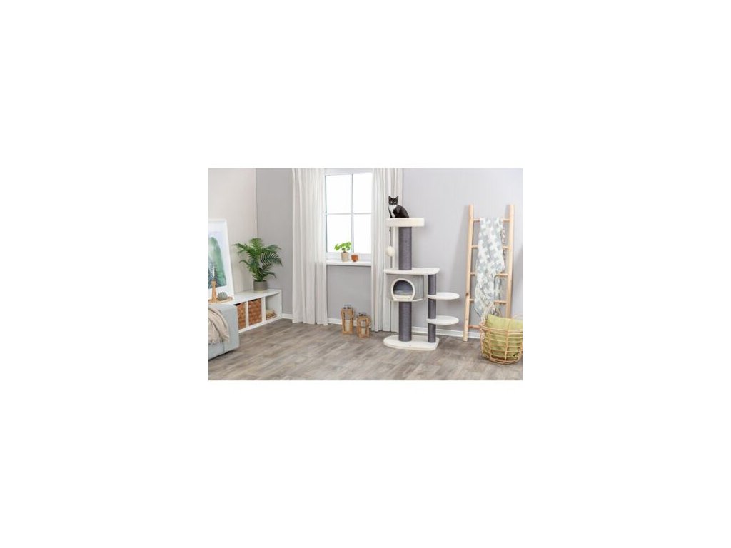 Trụ cào MARCELLO, 140 cm, 4 bệ, chim cúc cu, quả bóng, màu kem/xám