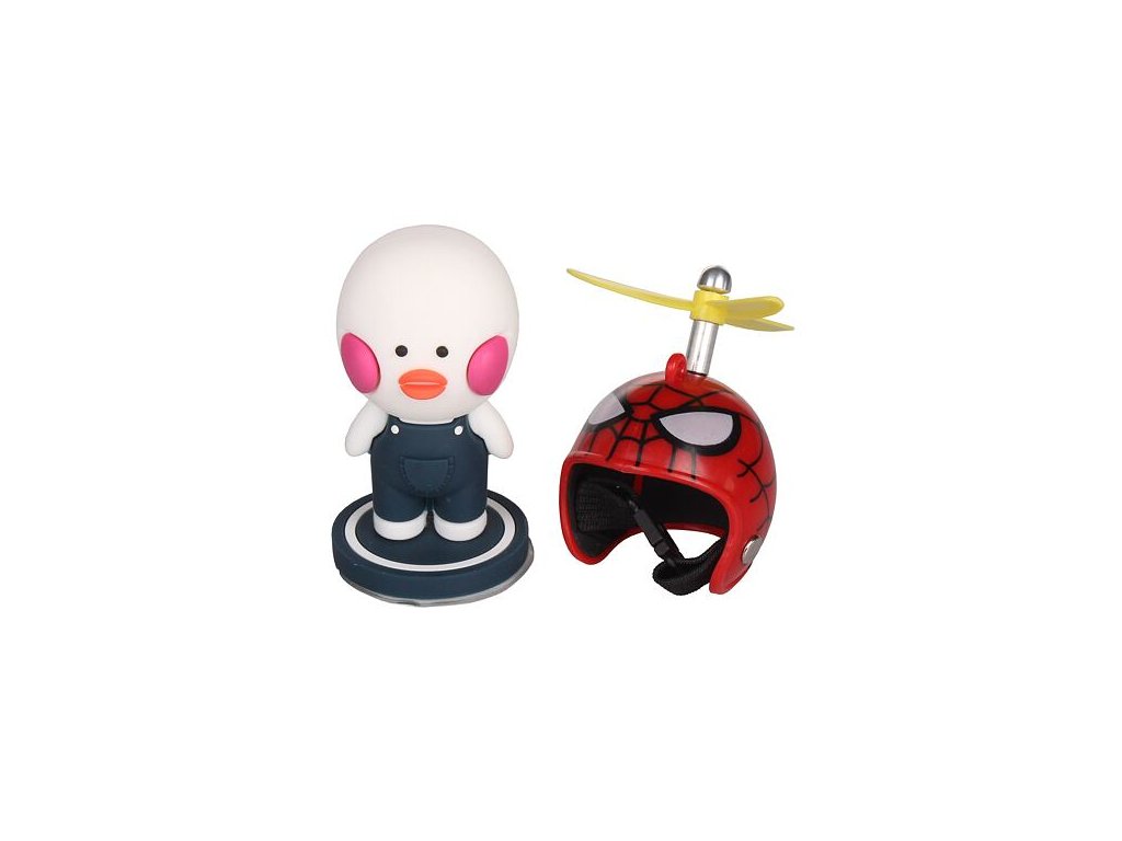 Bạn có phải là người yêu thích các nhân vật trang trí và muốn mở rộng bộ sưu tập của mình? Vịt trang trí Spiderduck sẽ trang trí bất kỳ kệ, bàn hoặc bảng điều khiển ô tô nào. Nhờ nhãn dính ở phía dưới hình, bạn có thể gắn chắc chắn vịt con vào những vị trí đã đề cập. Bạn có thể cởi hoặc đội mũ bảo hiểm có hình cánh quạt và họa tiết Người nhện rất thành công. Trang trí đẹp mắt cho căn phòng này sẽ làm bừng sáng nụ cười của nhiều đứa trẻ. Không thích hợp cho trẻ em dưới 6 tuổi. Thông số: kích thước: 9 x 4 cm, trọng lượng: 56 g, chất liệu: PVC, ABSCác thông số bổ sung