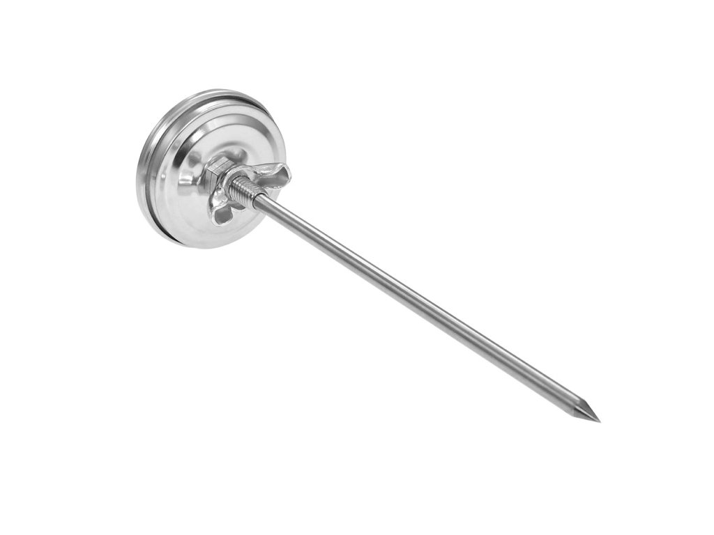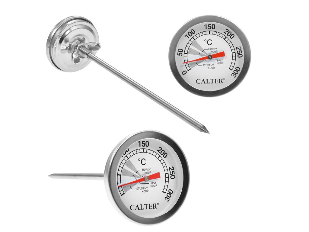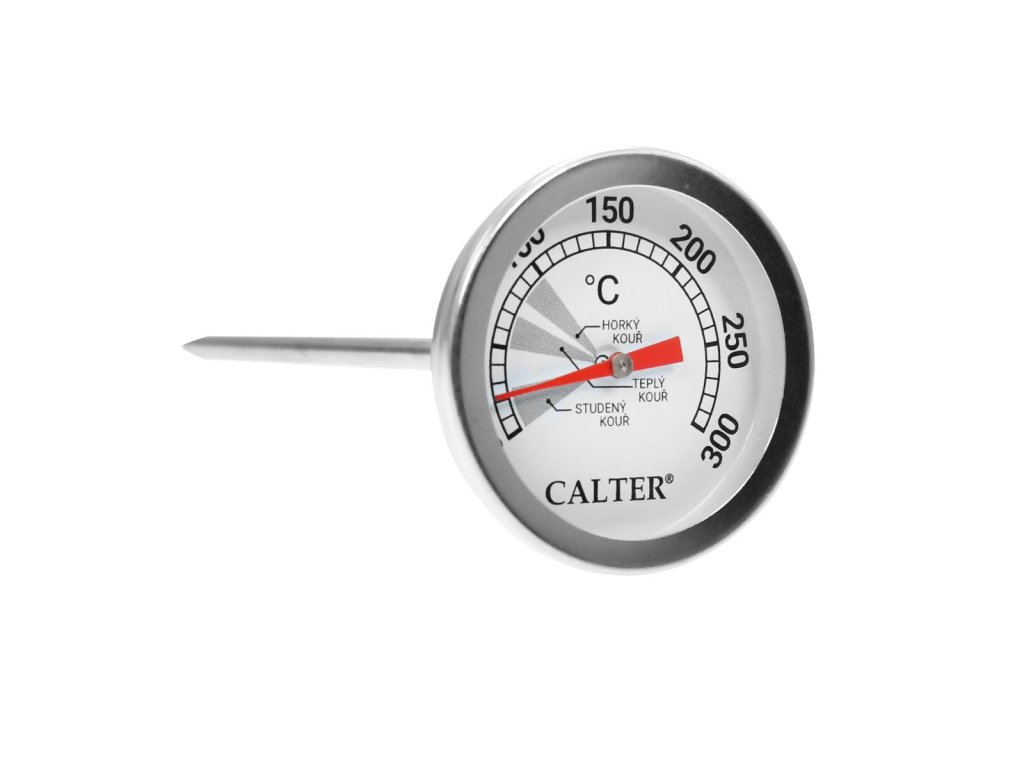 Nhiệt kế nhà khói bằng thép không gỉ. Nhiệt kế trong nhà xông khói theo dõi nhiệt độ chính xác trong quá trình chế biến thịt. Bạn khoan qua cửa lò xông khói và cố định nhiệt kế bằng đai ốc. Ưu điểm là đầu mở rộng của nó, đảm bảo đo nhiệt độ khách quan bên trong lò khói chứ không phải ở cửa, nơi nhiệt độ được làm mát bằng không khí bên ngoài. Đo nhiệt độ từ 0 đến 300 °C, thang đo tăng dần 10 °C. Từ 0-30°C bạn hút khói lạnh, từ 50-70°C bạn hút khói ấm và từ 80-100°C bạn hút khói nóng. Chất liệu: inox, kính Kích thước: đường kính 5 cm, dài 16 cm