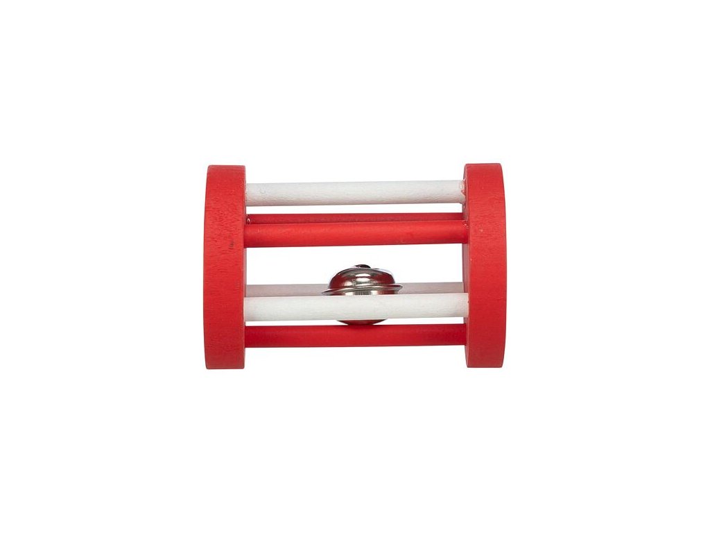 Xmas Roll - con lăn bằng gỗ có chuông dành cho loài gặm nhấm, ø 5 × 7 cm, đỏ/trắng