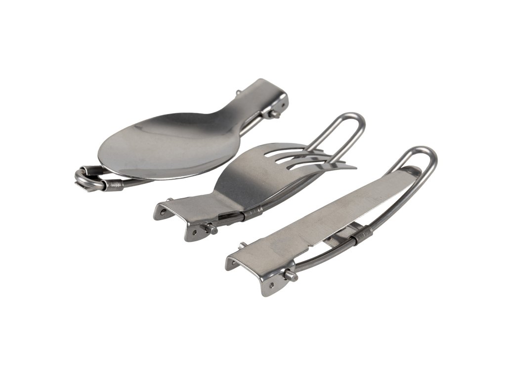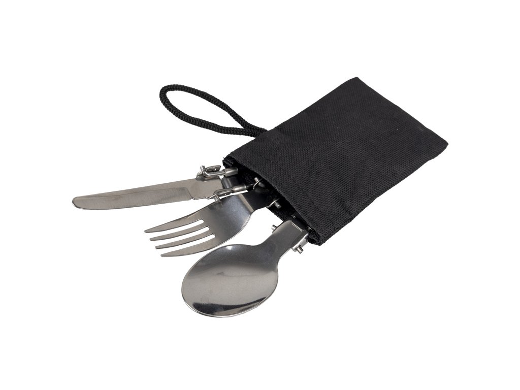 Nhỏ, nhẹ và nhỏ gọn, nhưng đồng thời đầy đủ dao kéo bằng thép không gỉ. Không có thìa/dĩa/gậy phổ thông, mà là dao kéo thông thường mà người ta có thể dùng để ăn theo cách có văn hóa, ngay cả khi ở bên ngoài nền văn minh. Nhờ có tay cầm có thể gập lại, nó có thể nằm gọn trong một chiếc vali du lịch nhỏ.