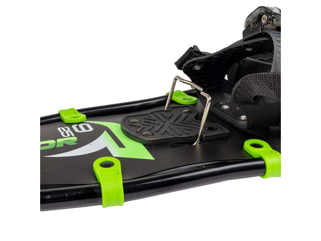 Giày đi tuyết có nhôm với khung được bổ sung hỗ trợ gập dưới gót chân, tạo điều kiện thuận lợi cho việc lên dốc. Dây buộc cho tất cả các loại giày size từ 35 đến 49. Gai tạo điều kiện thuận lợi cho việc di chuyển trên tuyết đóng băng. Được cung cấp kèm theo một túi đựng tiện dụng.