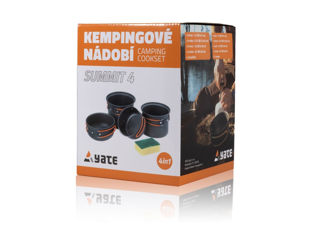 Bộ bát đĩa cho 3-4 người được làm bằng nhôm anodized cấp thực phẩm, có khả năng chống mài mòn. Tay cầm được bảo vệ bằng silicone chống bỏng và cầm trên tay rất thoải mái. Cung cấp với bao bì vận chuyển. Rất nhẹ và nhỏ gọn. Nồi có thể vừa vặn thoải mái với bình gas (300 g trong nồi nhỏ, 300 và 500 g trong nồi lớn) và bếp.