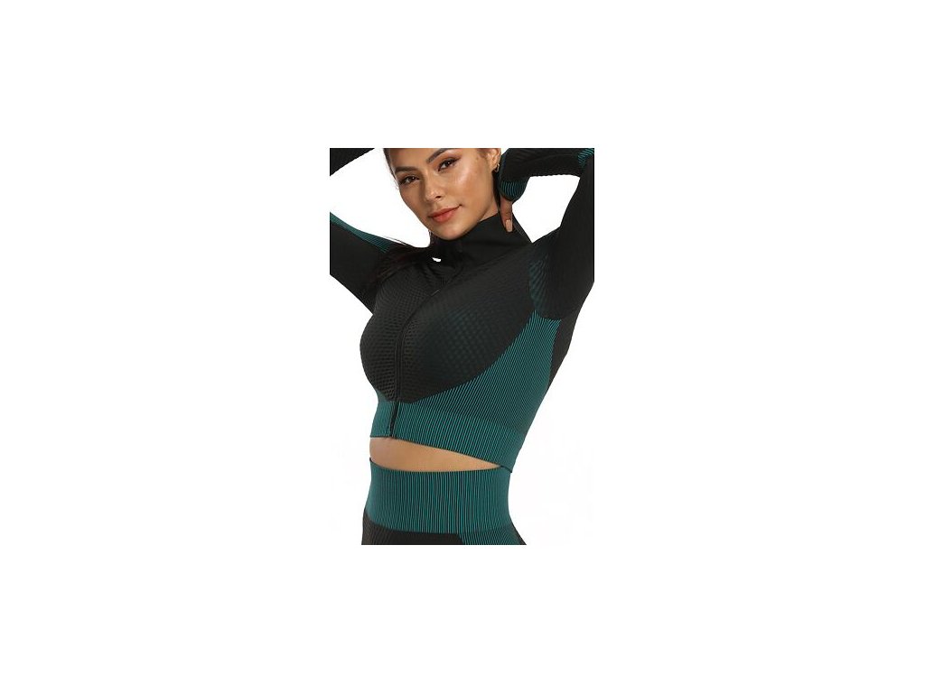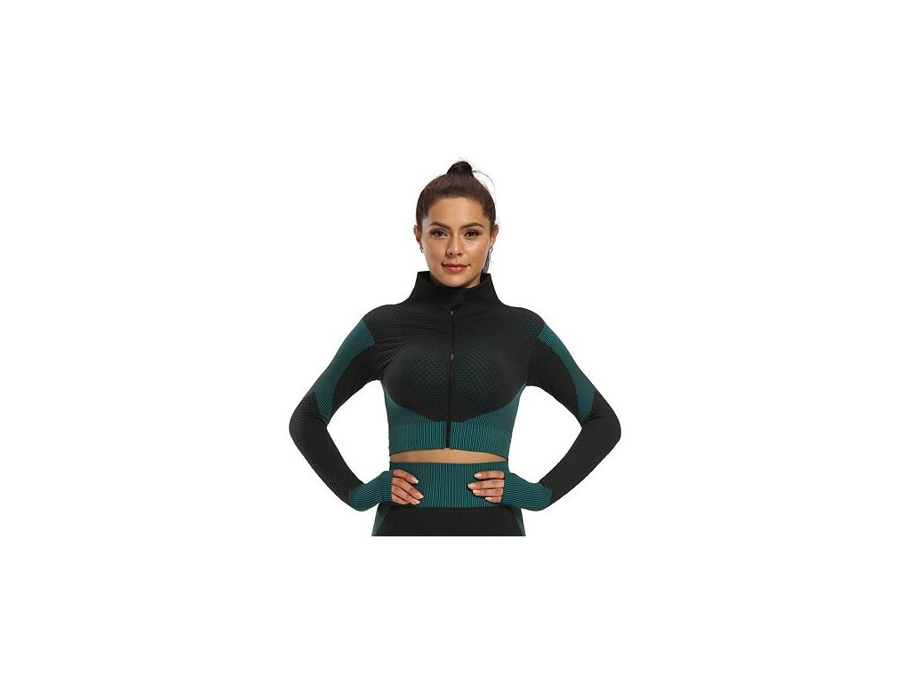 Bộ trang phục thể thao Yoga Sense dành cho nữ gồm ba món - áo lót thể thao, áo nỉ ngắn cổ đứng, có khóa kéo và quần legging dài. Áo ngực có dây đai khoét ở phía sau và cúp áo có thể tháo rời. Áo nỉ phong cách crop top có tay áo dài có lỗ xỏ ngón tay cái. Toàn bộ bộ quần áo được làm bằng vải với công nghệ đặc biệt, có thể tạo hình những đường cong ở một mức độ nhất định với hoa văn của nó. Mỗi phần được bổ sung bởi các chi tiết có màu tương phản. Bạn có thể sử dụng trang phục thể thao cho hầu hết các hoạt động thể thao, từ tập gym, chạy bộ cho đến yoga hay pilates. Thành phần: 90% polyamit, 10% polyester. Giặt ở nhiệt độ tối đa 30°C với các đồ có màu tương tự. Size S: Áo ngực ngang ngực: 36 cm, dưới ngực: 30, chiều dài: 35 cm Chiều dài áo: 41 cm, chiều rộng ngực: 32 cm, chiều rộng vai: 34 cm Chiều dài quần legging: 85 cm, chiều rộng eo: 30 cm, chiều rộng hông: 33 cm Size M: Áo ngực ngang ngực: 38 cm, dưới ngực: 32 cm, chiều dài: 36 cm Chiều dài áo: 41 cm, chiều rộng ngực: 34 cm, chiều rộng vai: 37 cm Chiều dài quần legging: 90 cm, Chiều rộng vòng eo: 32 cm, chiều rộng hông: 36 cm Size L: Áo ngực ngang ngực: 40 cm, dưới ngực: 34 cm, chiều dài: 37 cm Chiều dài áo: 43 cm, chiều rộng ngực: 37 cm, chiều rộng vai: 39 cm Chiều dài quần legging: 92 cm, chiều rộng eo: 33 cm, chiều rộng hông: 38 cmCác thông số bổ sung