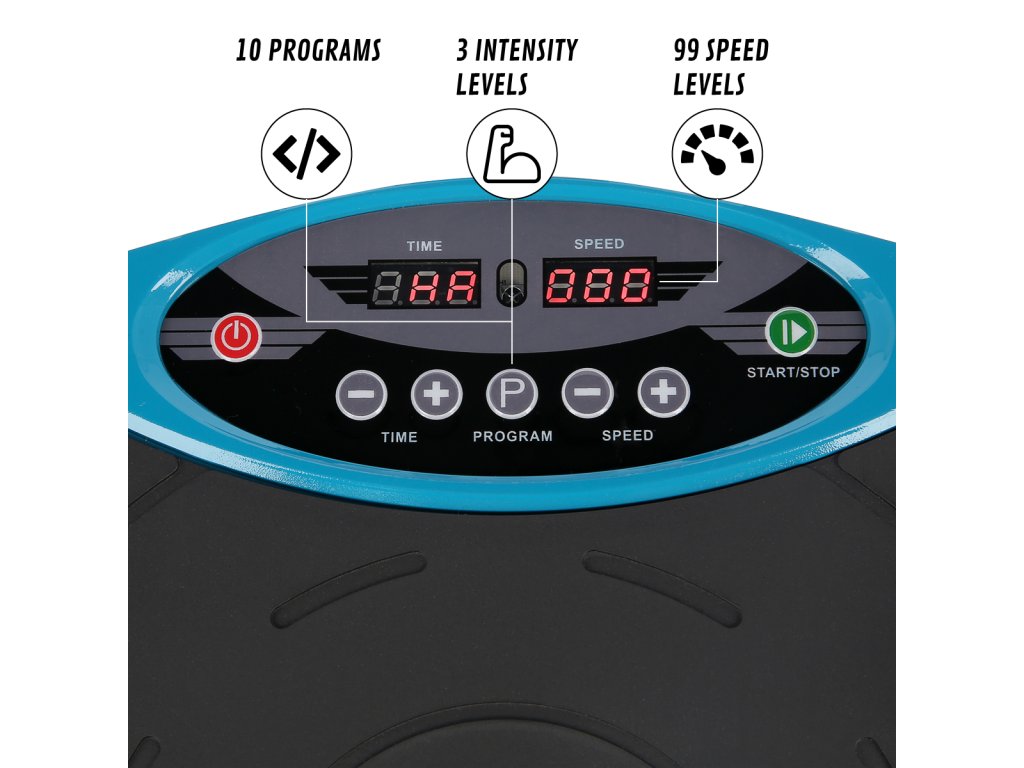 Plošina má také 3 úrovně intenzity - při stání uprostřed stroj simuluje chůzi, s mírnou mezerou mezi nohami stroj simuluje běhání a při širokém rozkročení simulujete sprint. A díky dálkovému ovládači, který je součástí balení, je nastavení cvičení rychlé a jednoduché.
