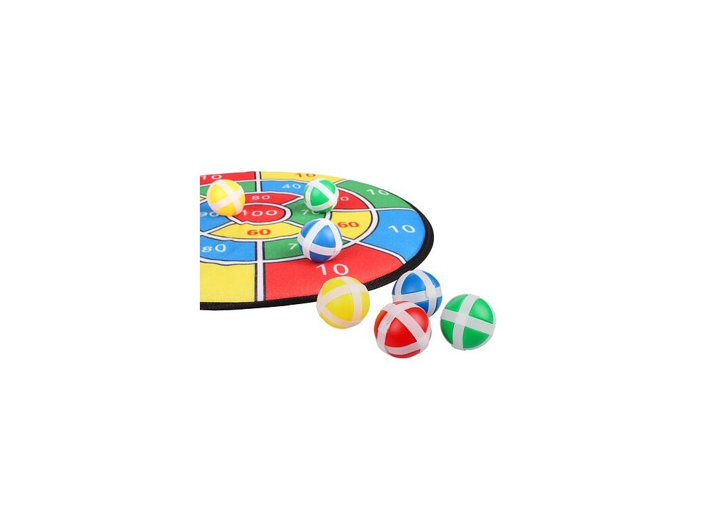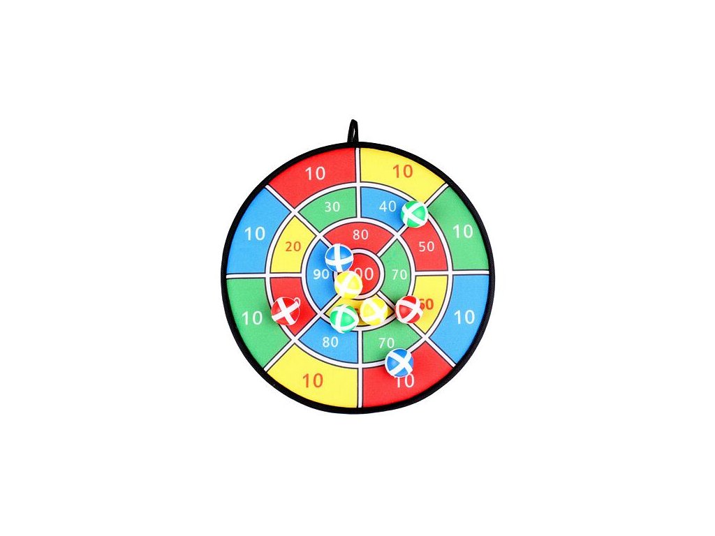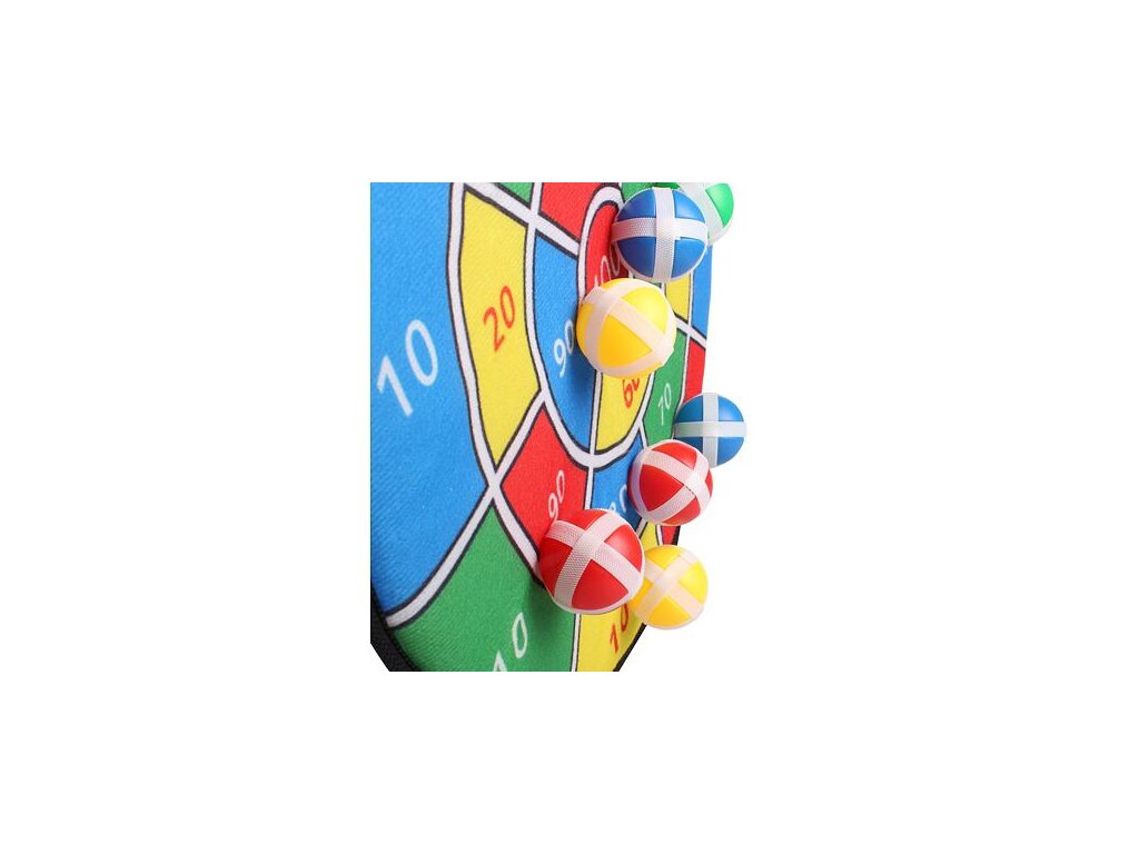 Jednoduchá, avšak velice hravá dětská hra Ball Target zabaví rychle celou rodinu. Spočívá v jednoduchém strefování terče pomocí přidaných míčků. Cílem hry je samozřejmě naházet co nejvíce bodů. Na terči o průměru 36 cm naleznete pole s hodnotami od 10 do maximálních 100 bodů. Celkem 8 míčků je rozděleno do 4 barev a to - modré, zelené, žluté a červené. Povrch míčků je upraven speciální páskou, která udrží míček na terči. Můžete tak terč zavěsit na zeď a plynule hrát formou šipek. Zároveň tato vlastnost plní i funkci praktickou. Nemusíte se bát, že by se vám jednotlivé míčky poztráceli. Tato hračka se perfektně hodí do dětských pokojíků, školek nebo sportovních klubů. Upozornění: Produkt není vhodný pro děti mladší 3 let.Doplňkové parametry