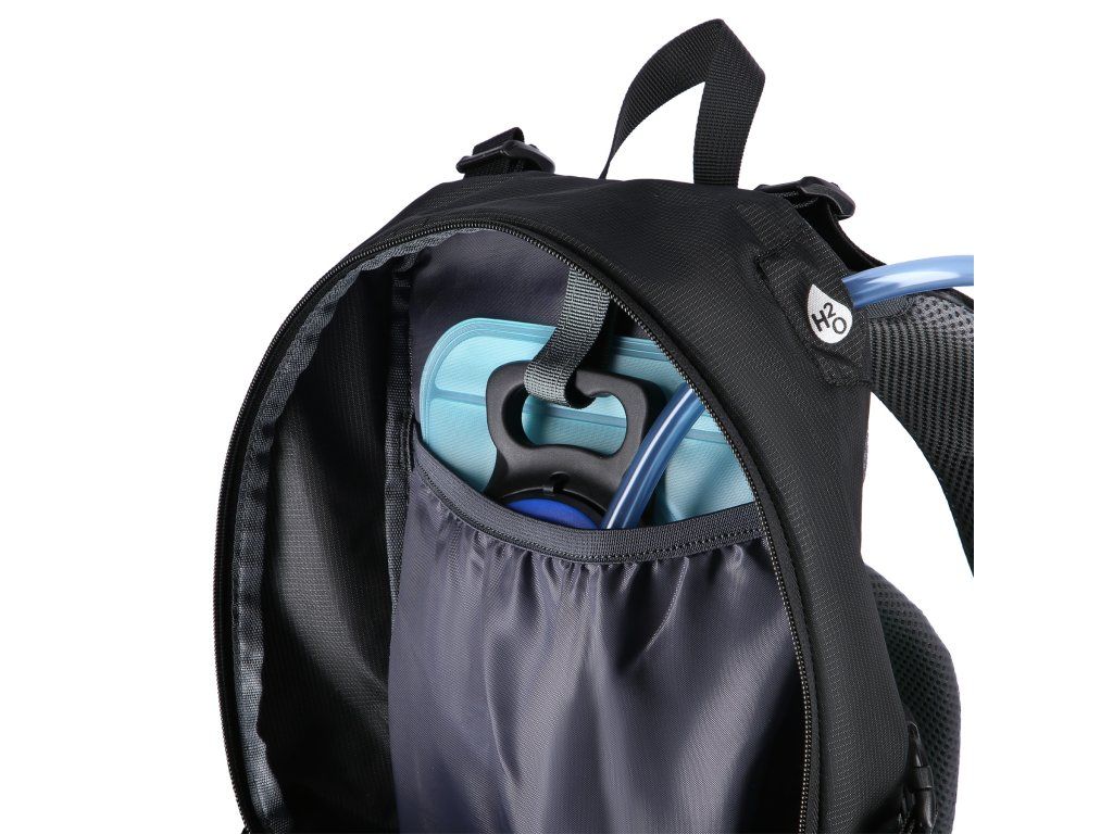 Hlavní komora na dvoucestný zip je opatřena kapsou na hydrovak, který lze zavěsit na řemínek se suchým zipem. Druhá, menší komora je také opatřena dvoucestným zipem a uvnitř se nachází 2 kapsy na drobnosti a 3 poutka například pro umístění svítilny. V horní části předního panelu se nachází menší kapsa, do které se přistupuje jednocestným zipem. Po stranách batohu jsou síťované kapsy s gumičkou v lemu, nad kapsami se nachází délkově nastavitelné popruhy s přezkou, pod které lze umístit například vyšší láhev. Z čela batohu se nachází 2 gumová poutka a 2 smyčky pro přenášení turistických holí, 4 poutka pro zavěšení například kempingového vybavení a poutko pro připevnění blikačky pro zvýšení viditelnosti za šera.