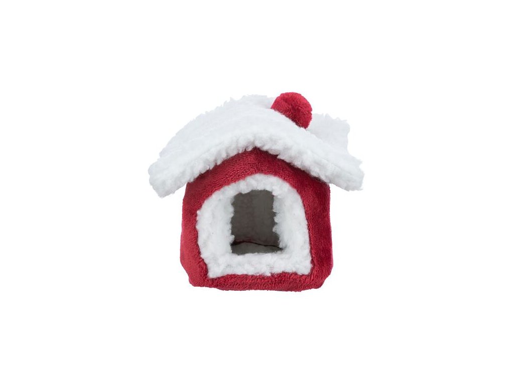 Xmas Cuddly CAVE - plyšový domek pro myš/křečka,15 x 12 x 15 cm, červená/bílá