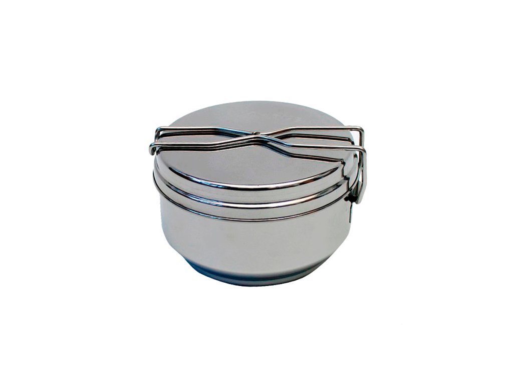 Klasický ešus v provedení nerez vhodný pro každého táborníka. Miska 1,25 l, víko 0,3 l. Nerez je pro potraviny vhodnější než hliník.